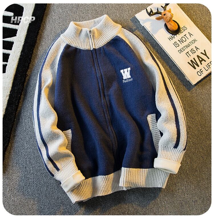 水平トレンディなレトロな ese スタイル怠惰なハーフハイカラー ジッパー セーター男性秋と冬の厚みのあるカップル ニット カーディガン ジャケット オータム 秋物 ウィンター 冬物 3381998614437357
