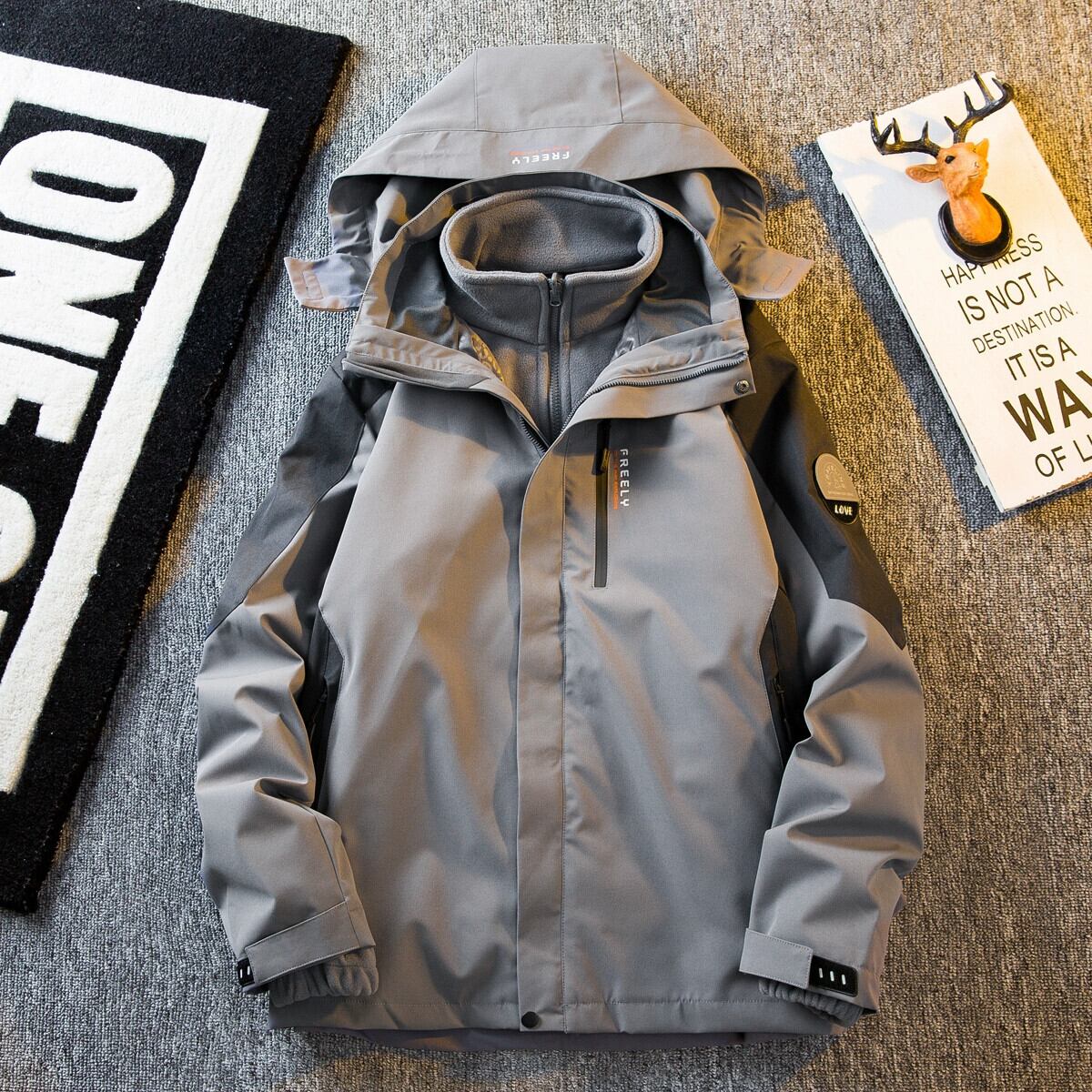 Hengpai トレンディな取り外し可能なスリーインワンジャケットメンズ秋と冬のベルベット肥厚作業服綿ジャケット男性 コットン オータム 秋物 ウィンター 冬物 3381936434878616