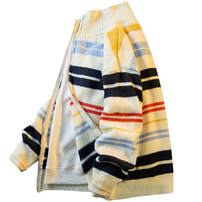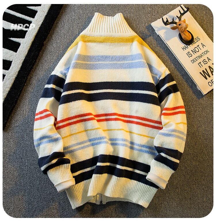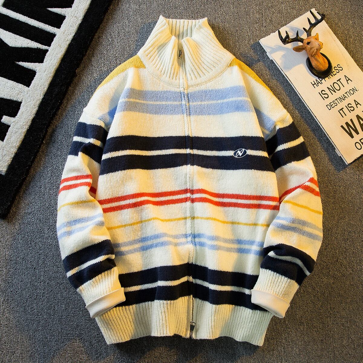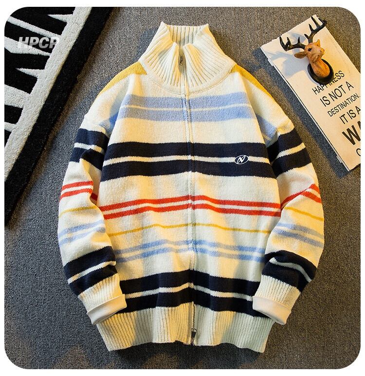 Hengpai トレンディなコントラスト ストライプ カーディガン ジッパー セーターの男性と女性の秋と冬のハンサムなファッション ブランド カップル怠惰なニット ジャケット オータム 秋物 ウィンター 冬物 338192098086512