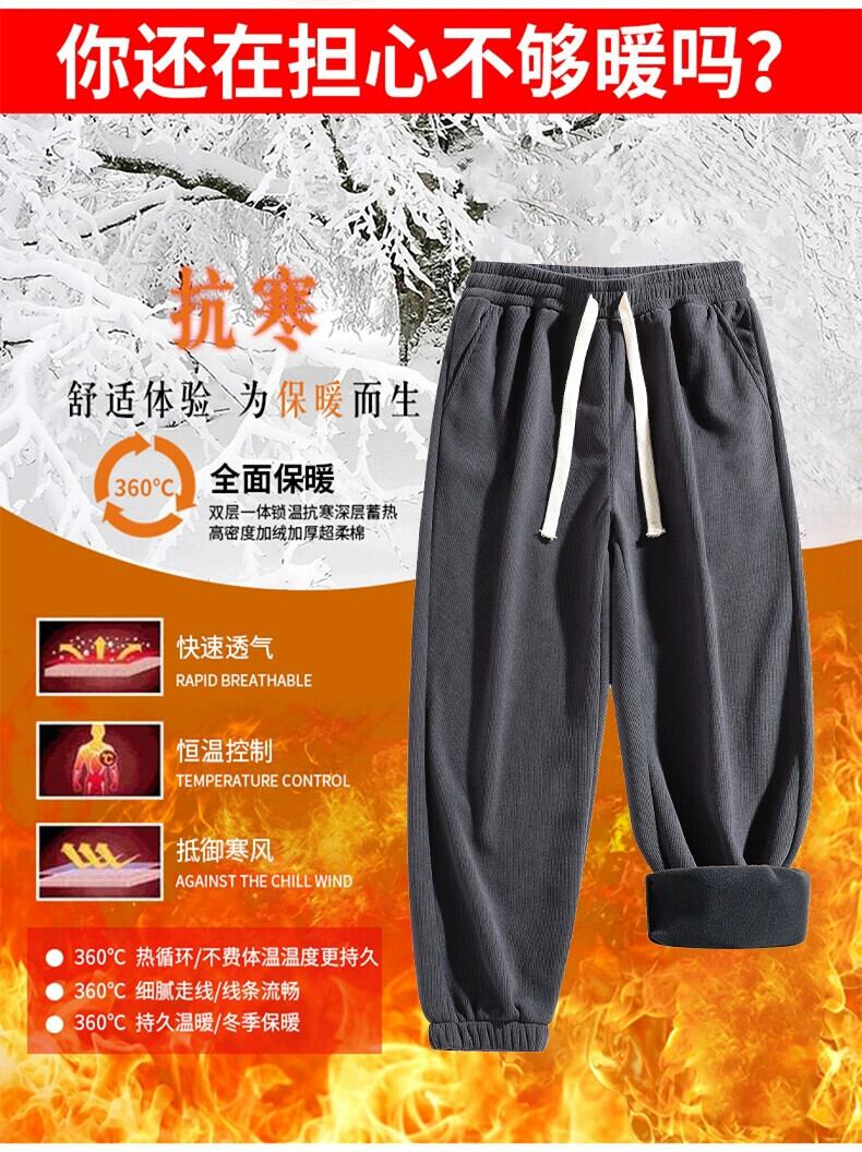 Hengpai トレンディな冬メンズコーデュロイスウェットパンツ秋と冬のトレンディなブランドハイストリートパンツ肥厚とベルベットスポーツパンツ オータム 秋物 ウィンター 冬物 3381929298925870