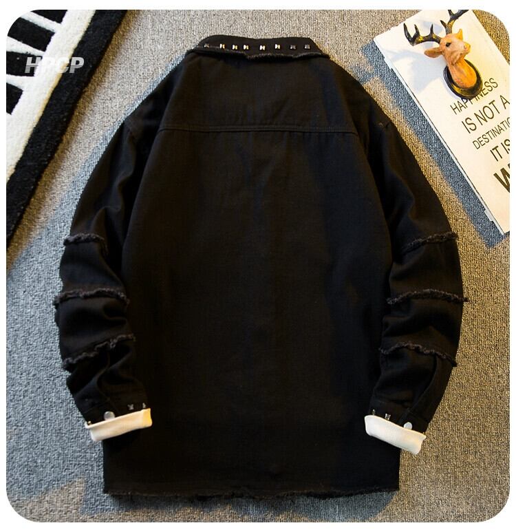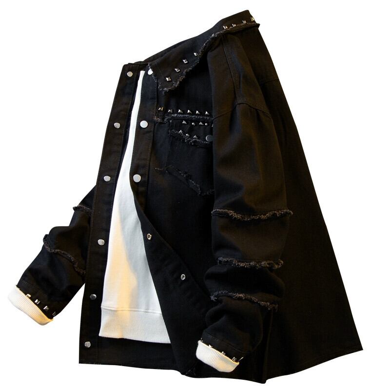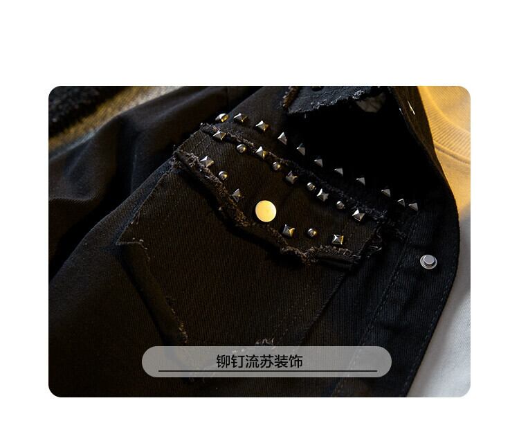 Hengpai トレンディなハイストリートパンクリベットデニムジャケットメンズ秋冬ハンサムハイエンドストリートブラックワークジャケット オータム 秋物 ウィンター 冬物 3381951274893318