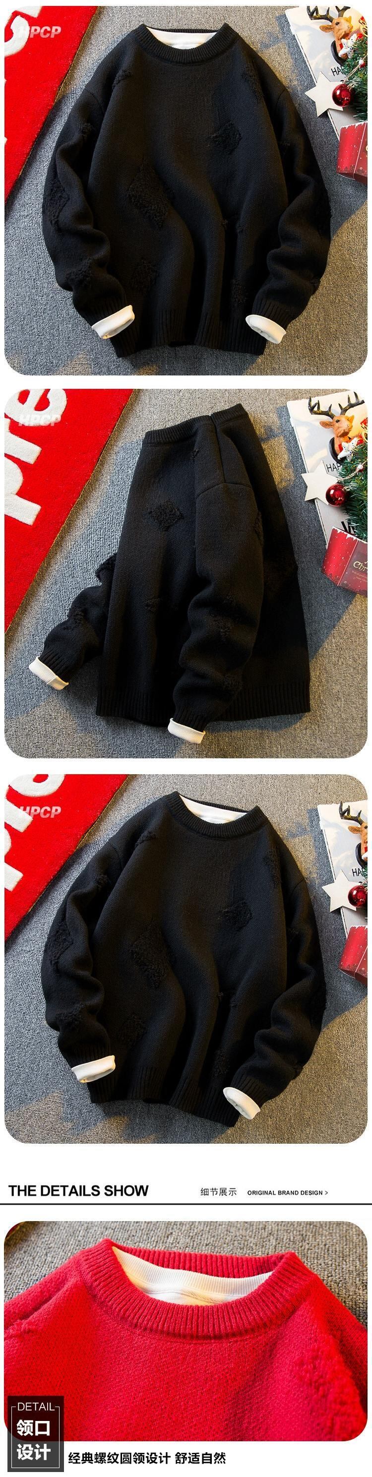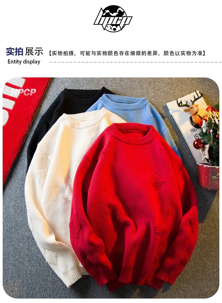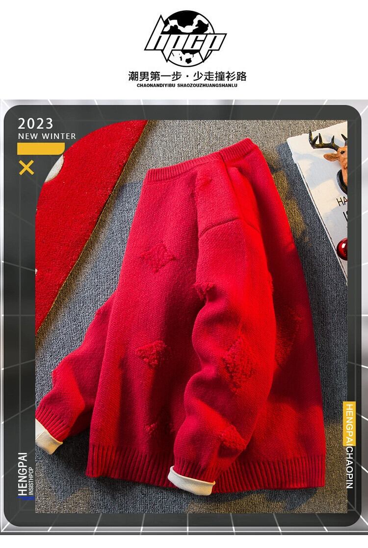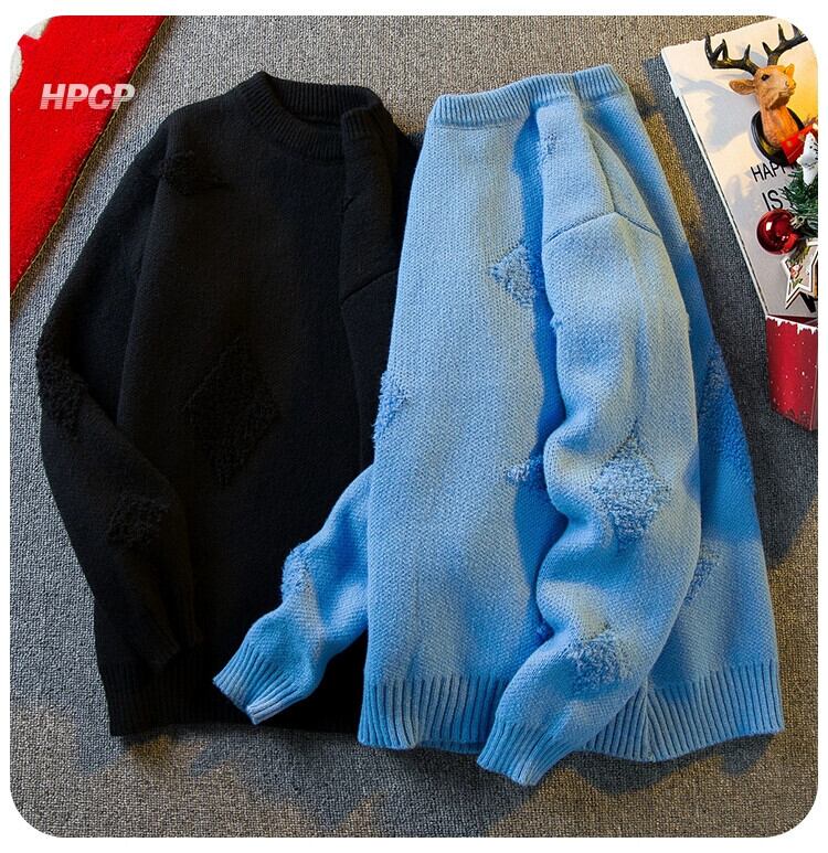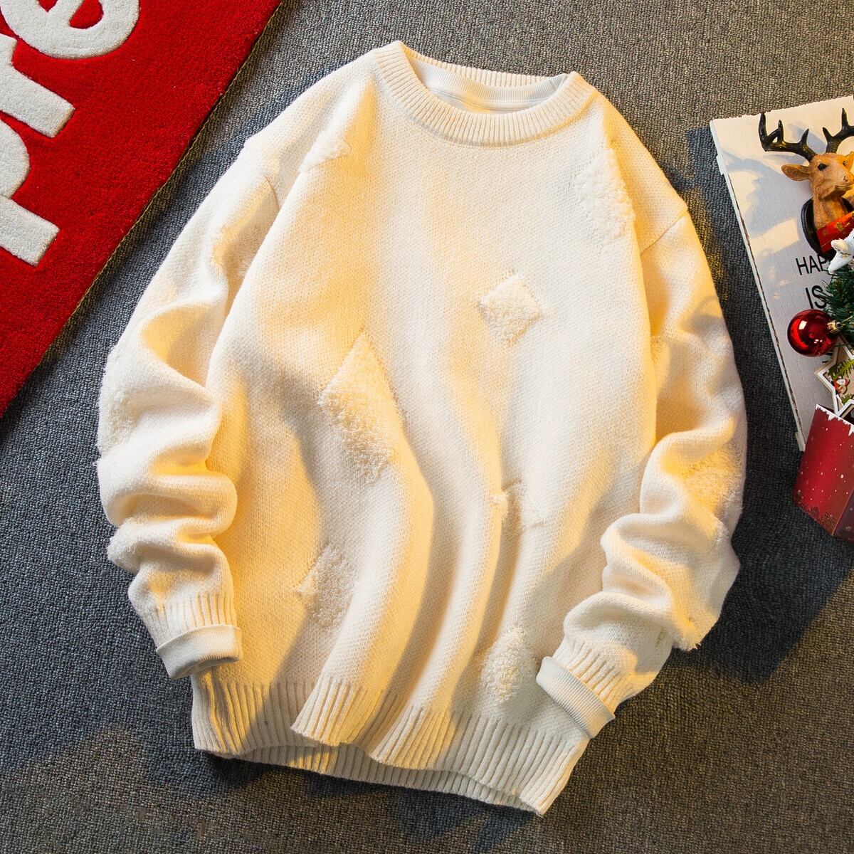 横型のトレンディなアメリカンレトロジャカード菱形セーター、冬、怠惰なスタイル、ハイエンド、厚みのあるラウンドネックセーター ウィンター 冬物 Oネック 3381926849718228