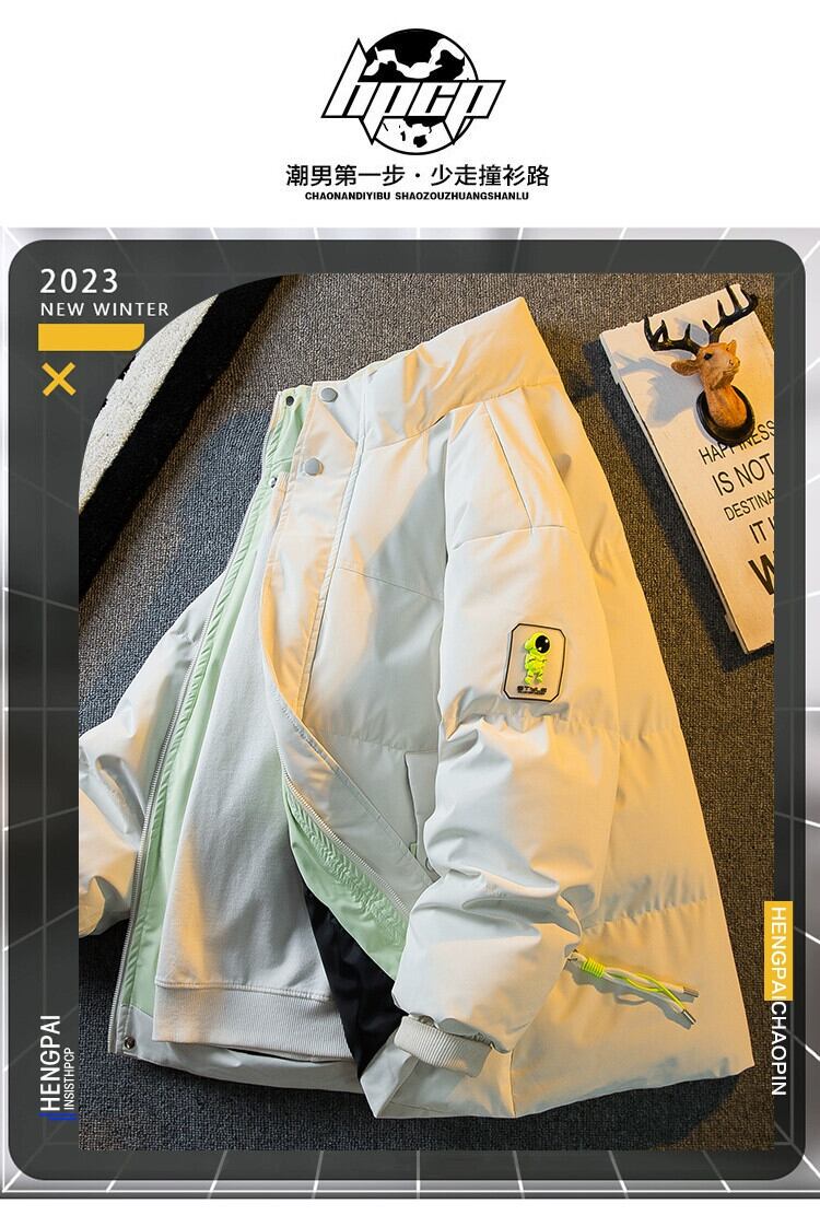Hengpai トレンド冬肥厚スタンドカラーコットンジャケットボーイズ 2023 新しいルーズコットンジャケットパンコート冬のジャケット男性 ウィンター 冬物 3381960233411388