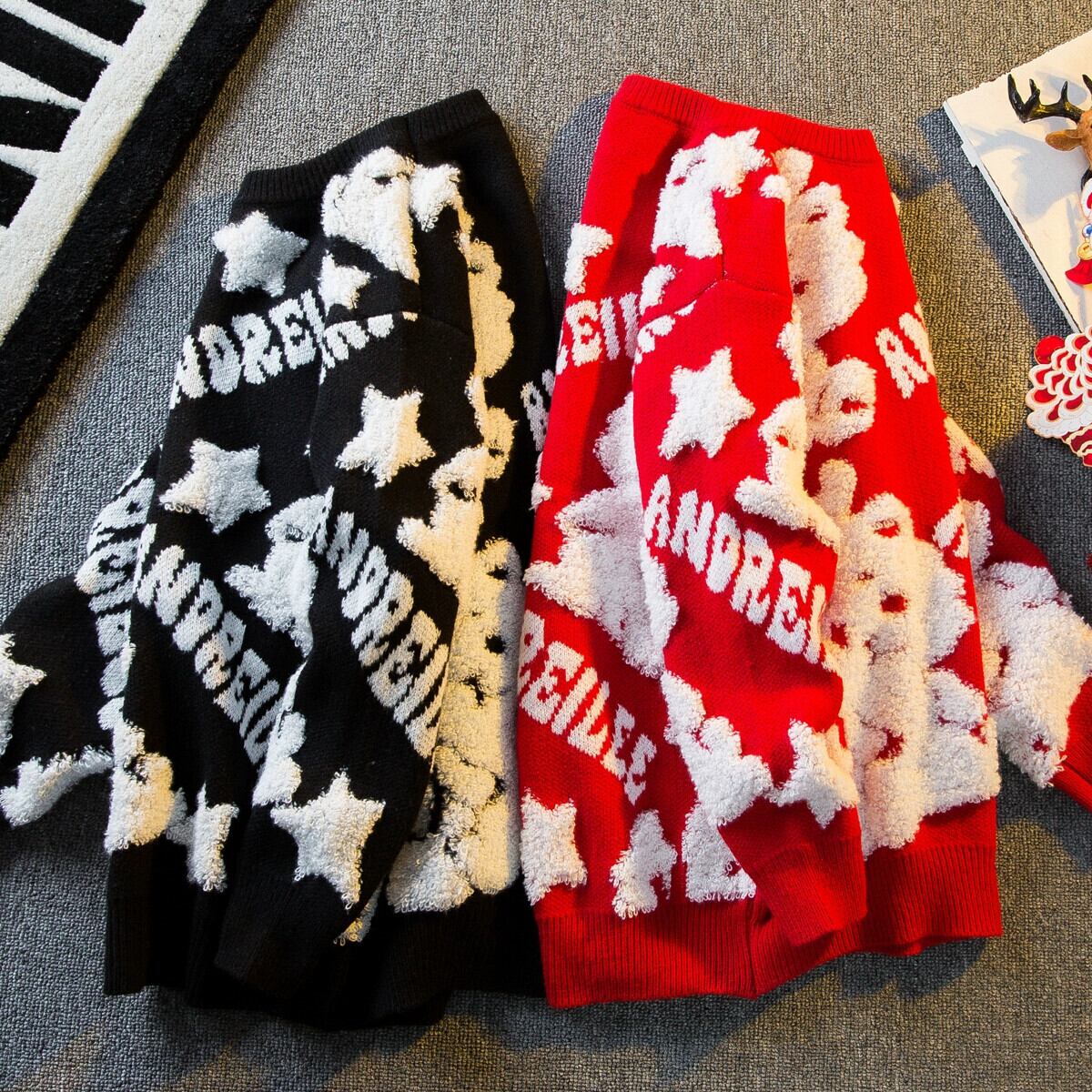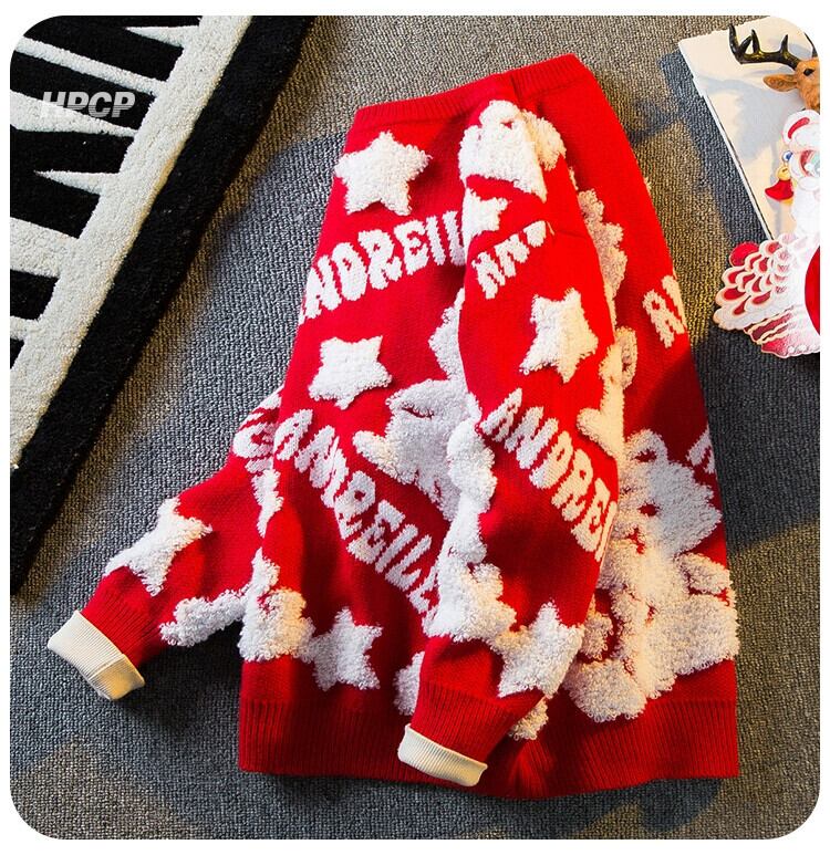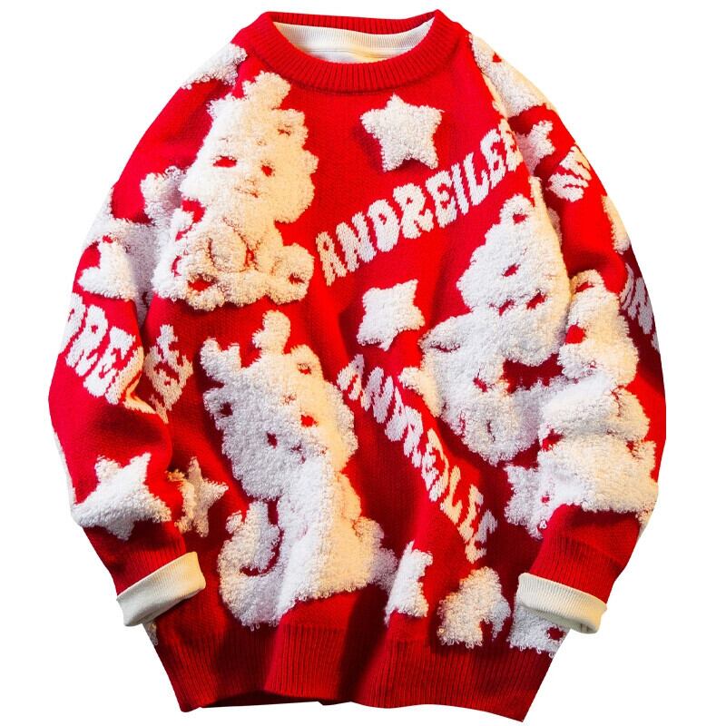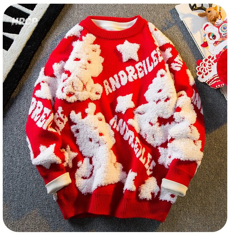 横型のトレンド製品、辰年とベンミン年の赤いセーター、秋冬のメンズ、内側にセーターが入った厚みのあるタオル刺繍入りセーター レッド オータム 秋物 ウィンター 冬物 3381928984175772