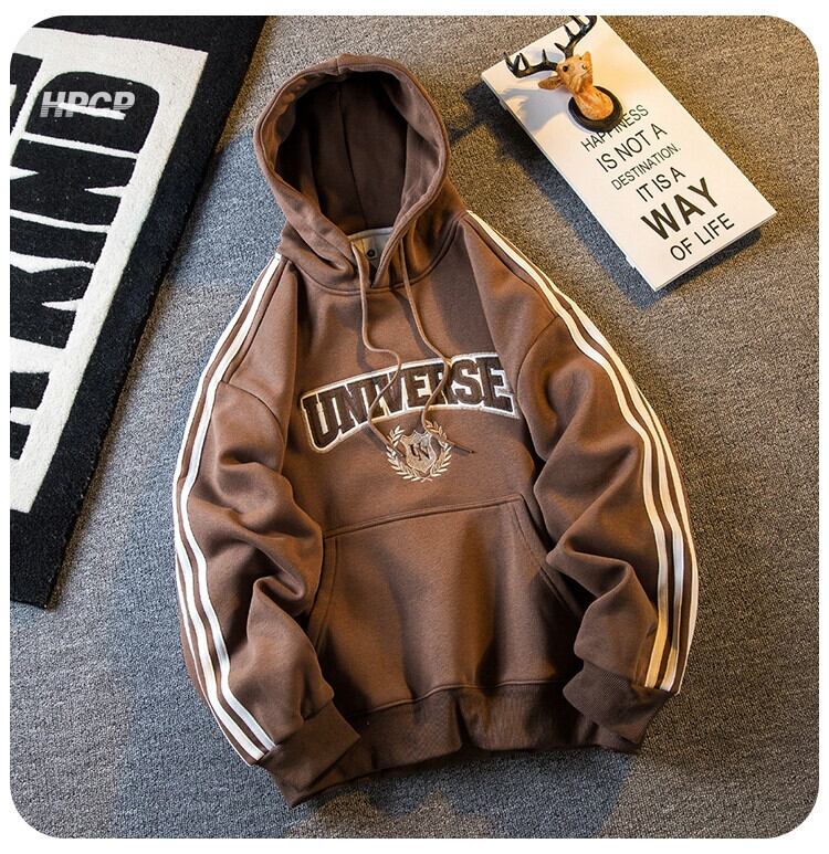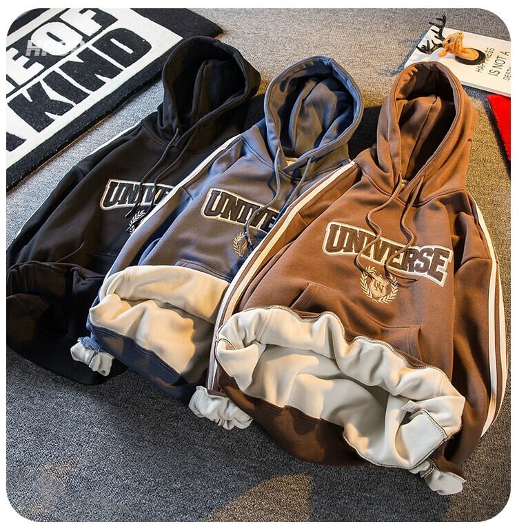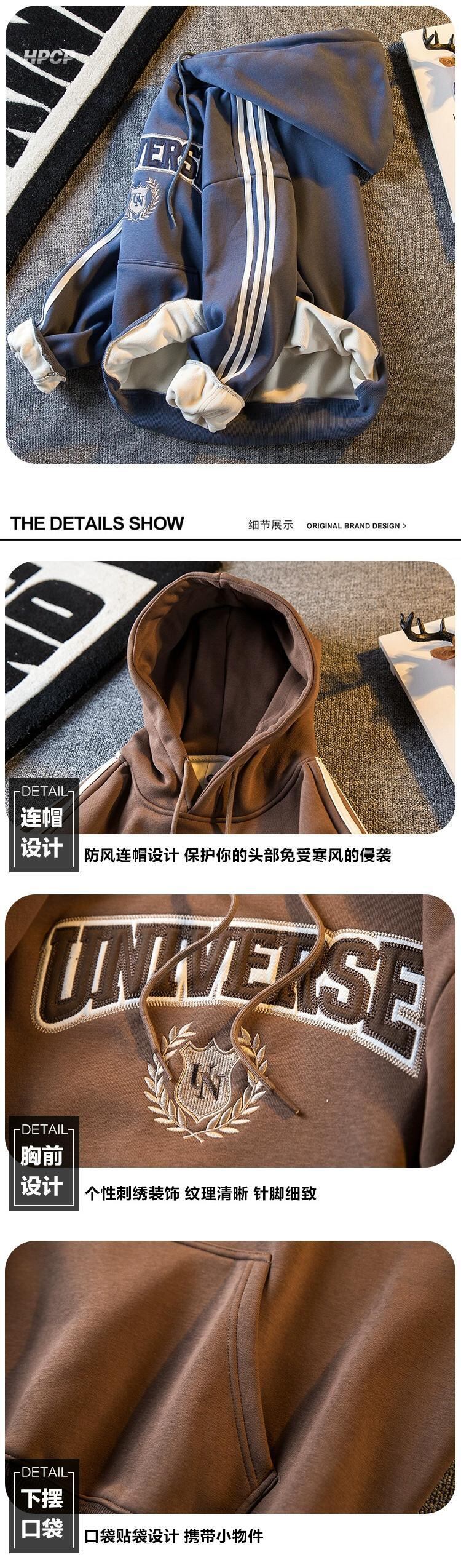 Hengpai トレンディなアメリカのレトロな重工業刺繍スウェットシャツジャケットメンズ秋と冬の新しいスタイルプラスベルベット厚く暖かいトップ服 レッド オータム 秋物 ウィンター 冬物 3381927663186932