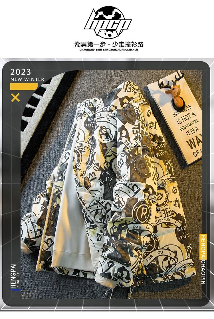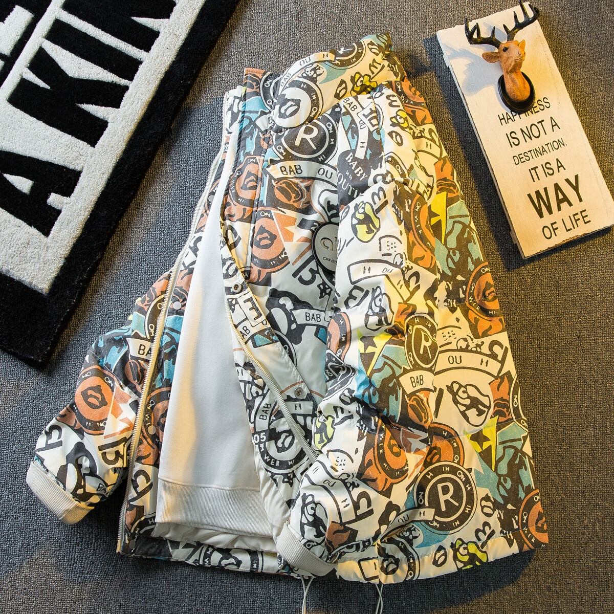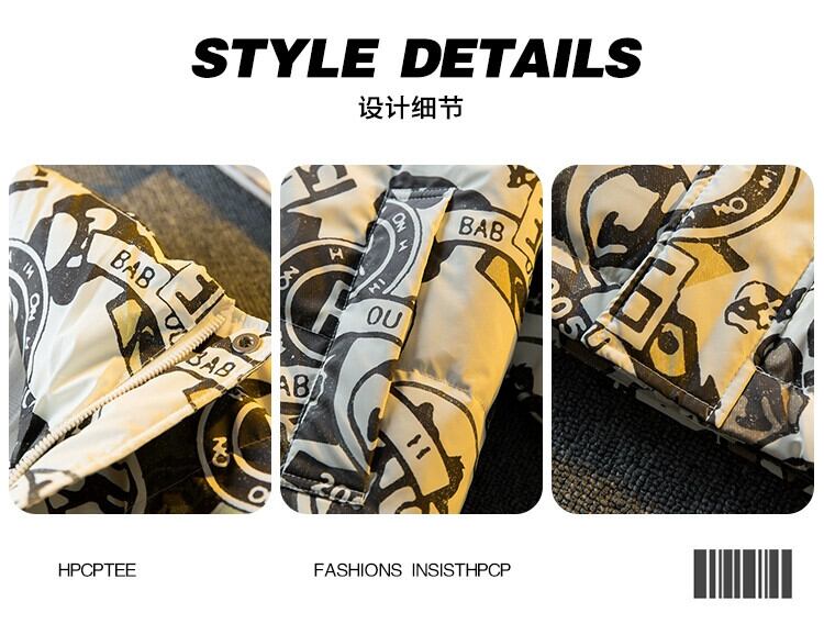 Hengpai トレンディなアメリカン グラフィティ プリント トレンディなブランド ダウン ジャケット冬カップル ブレッド コート肥厚暖かい綿のジャケット コットン ウィンター 冬物 338194589795824