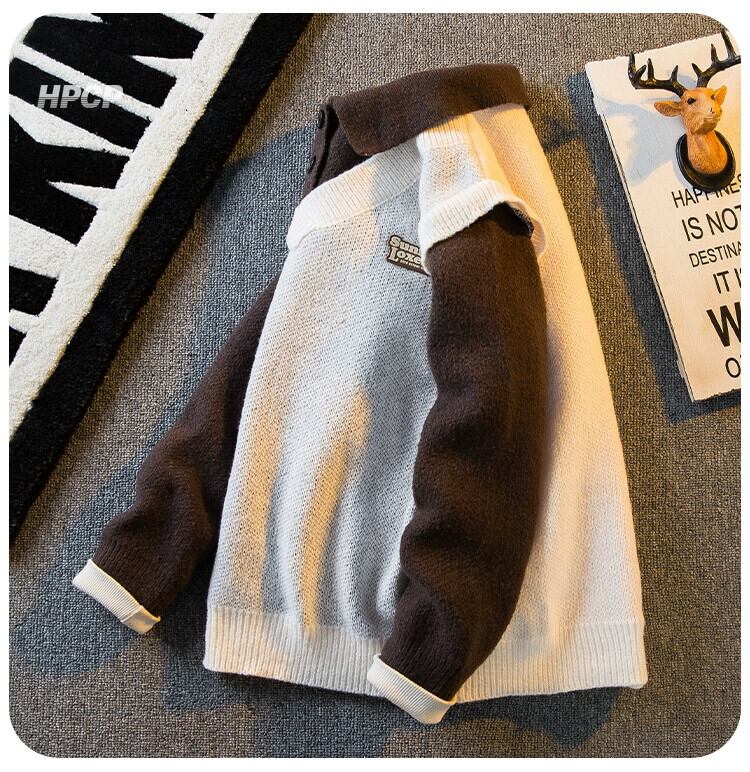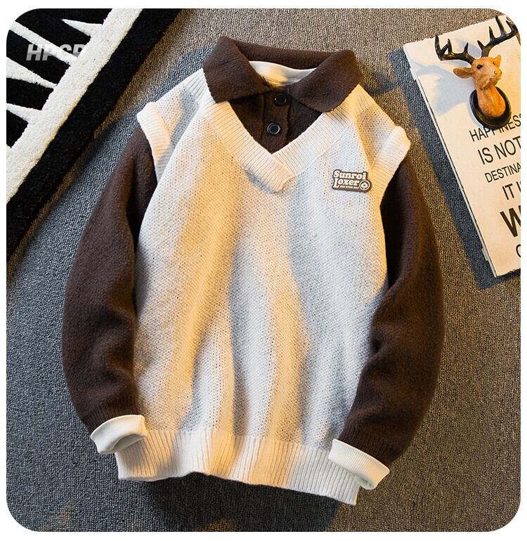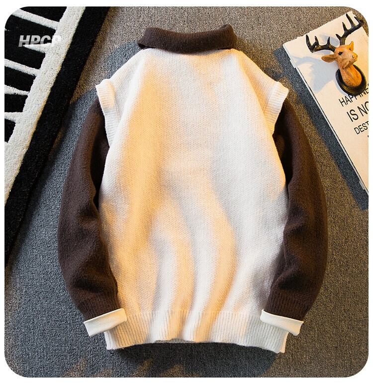 Hengpai トレンディなカレッジスタイル偽ツーピースセータージャケット男の子の秋と冬の ese スタイルのレトロなポロ襟セーターメンズ オータム 秋物 ウィンター 冬物 3381962891992463
