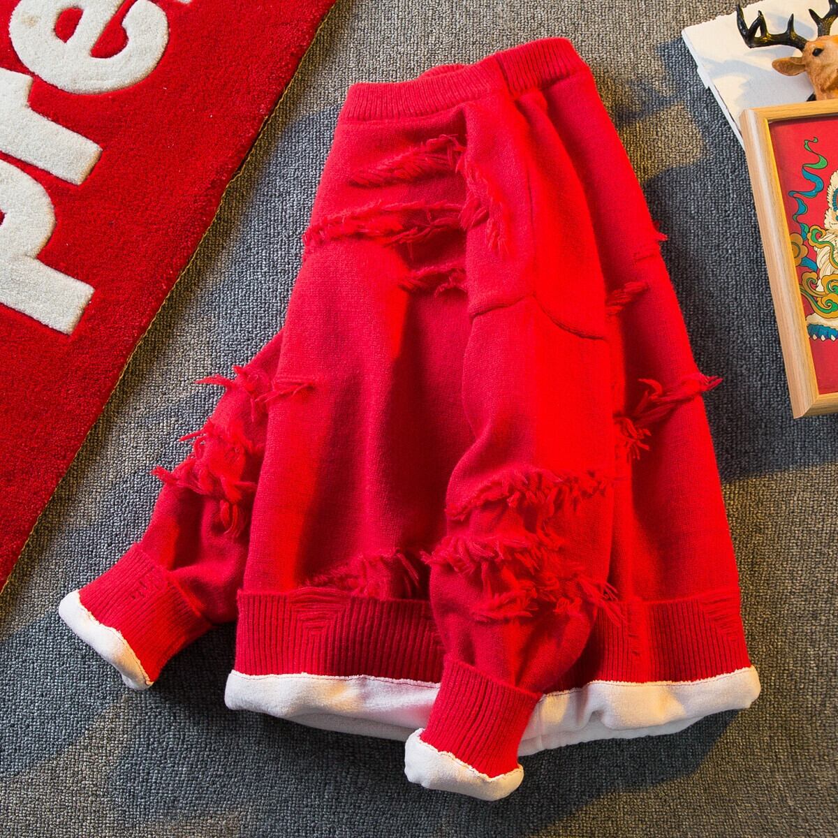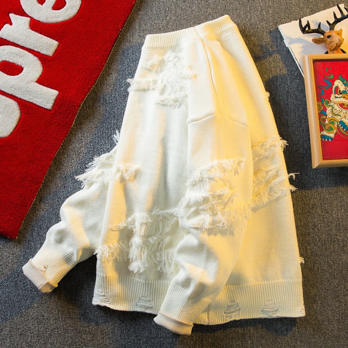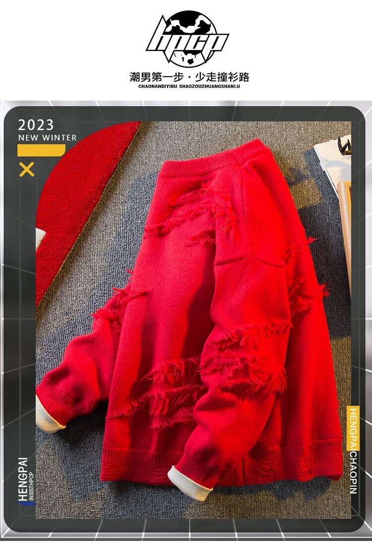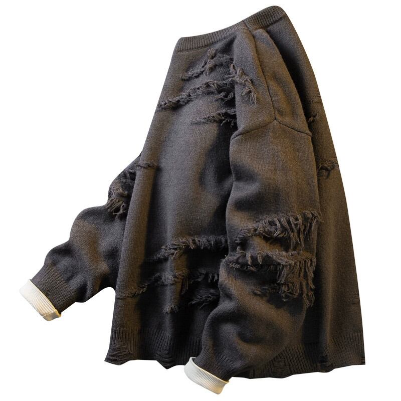 秋と冬の横型トレンディなアメリカの荒れ地スクラッチセーターメンズ、怠惰なスタイル、高級ニットセーター、ベルベットと厚みのあるセーター オータム 秋物 ウィンター 冬物 3381973804342435
