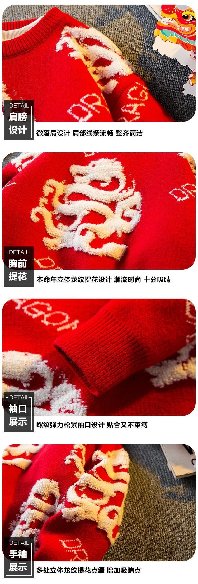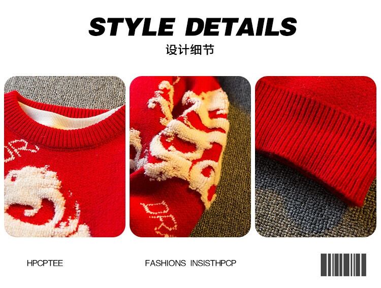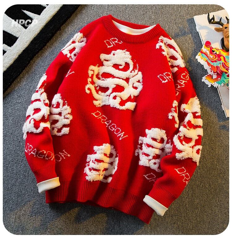 Hengpai トレンディな製品、ドラゴンの年、ベン ミン イヤーの赤いセーター、メンズのトレンディなブランドのカップルのセーター、冬の年のコートとセーター レッド ウィンター 冬物 3381920466073444