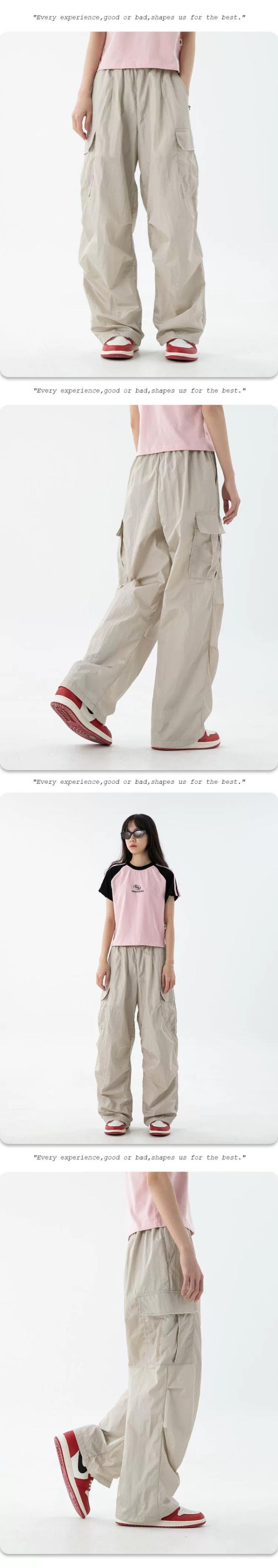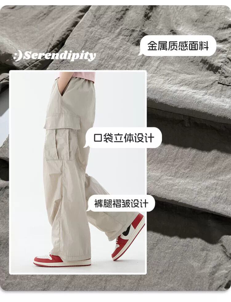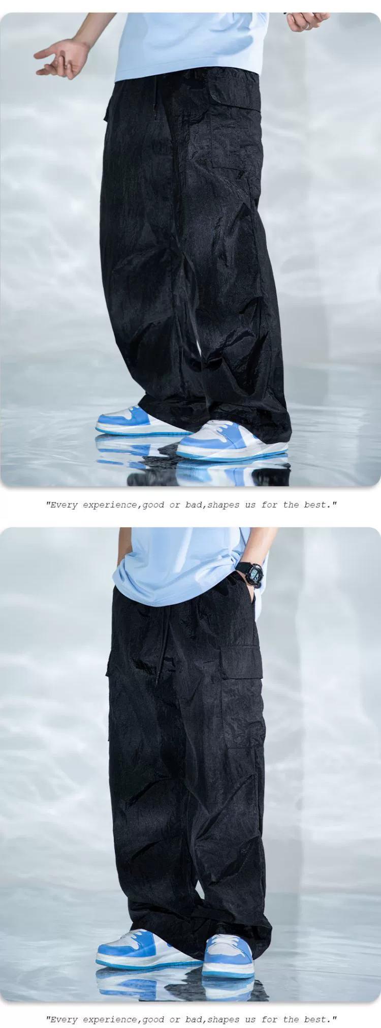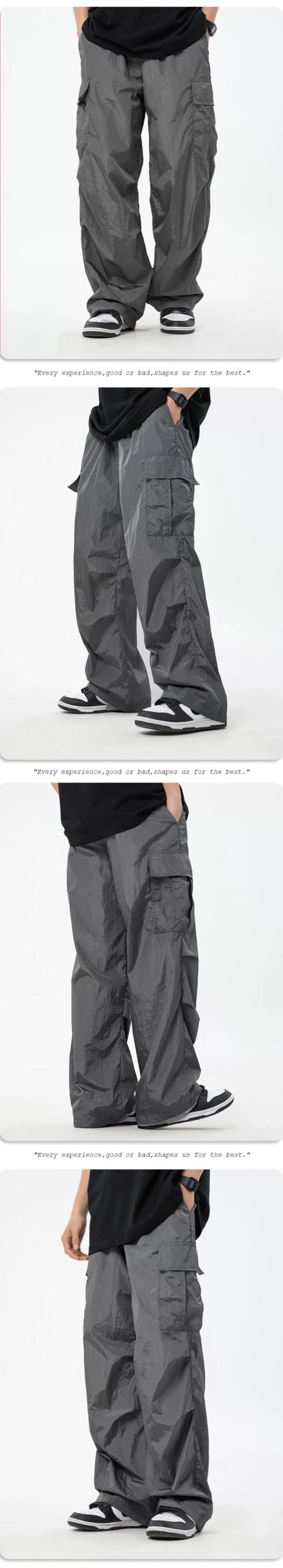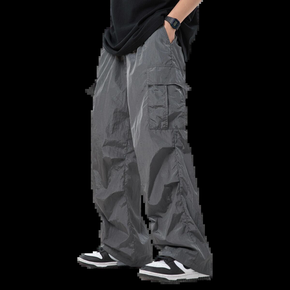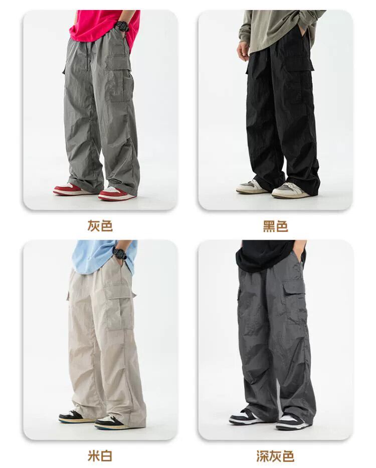 水平トレンディアメリカンストレートレッグマルチポケットオーバーオールメンズ、薄い春と秋のゆったりとしたワイドレッグ機能的なダブルプリーツパラトルーパーパンツ スプリング 春物 オータム 秋物 ポケット多め 3381988038836607