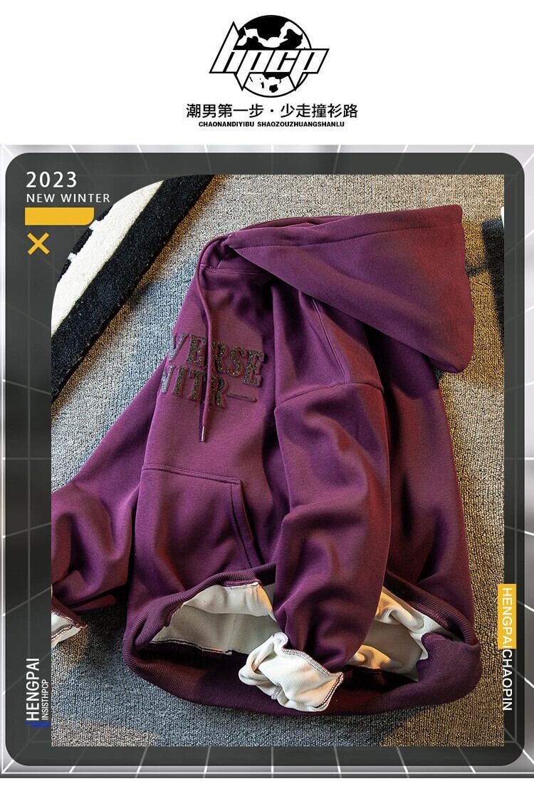 Hengpai トレンディな厚手の厚みとベルベットのアメリカンフード付きスウェットシャツメンズ秋冬 2023 新しい大きいサイズのルーズジャケット 大きめサイズ オータム 秋物 ウィンター 冬物 3381984972325088