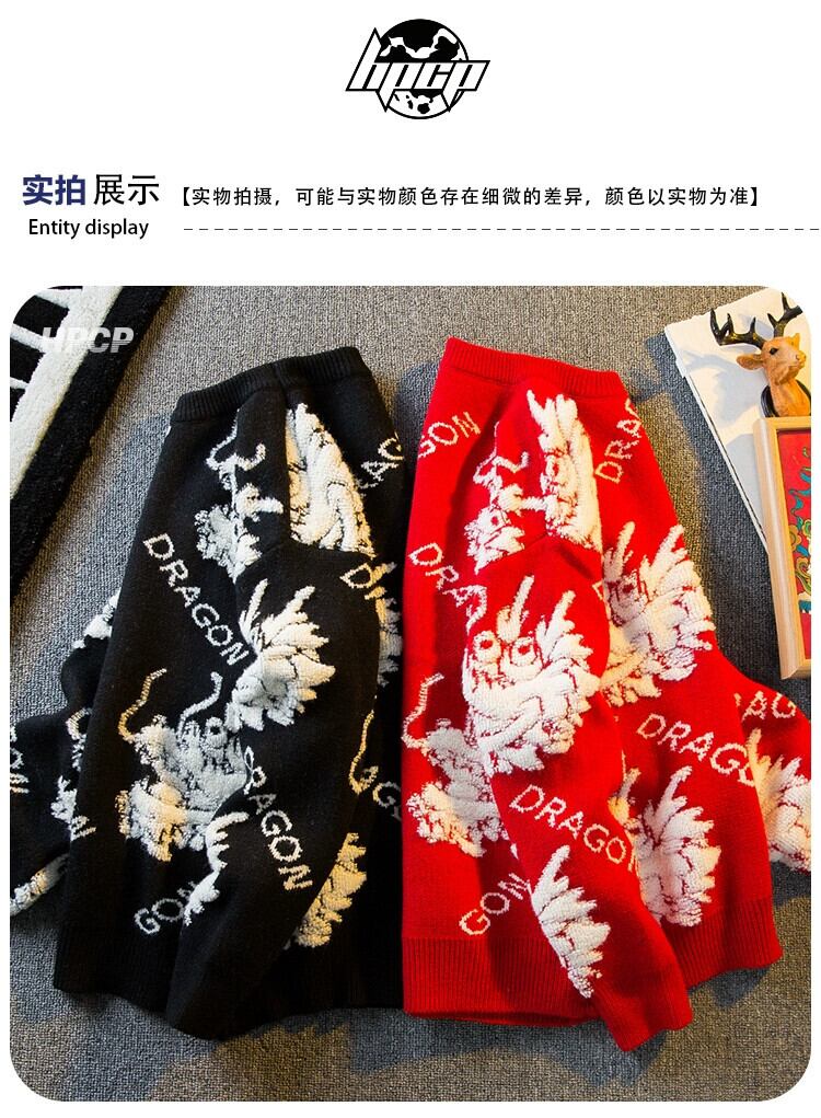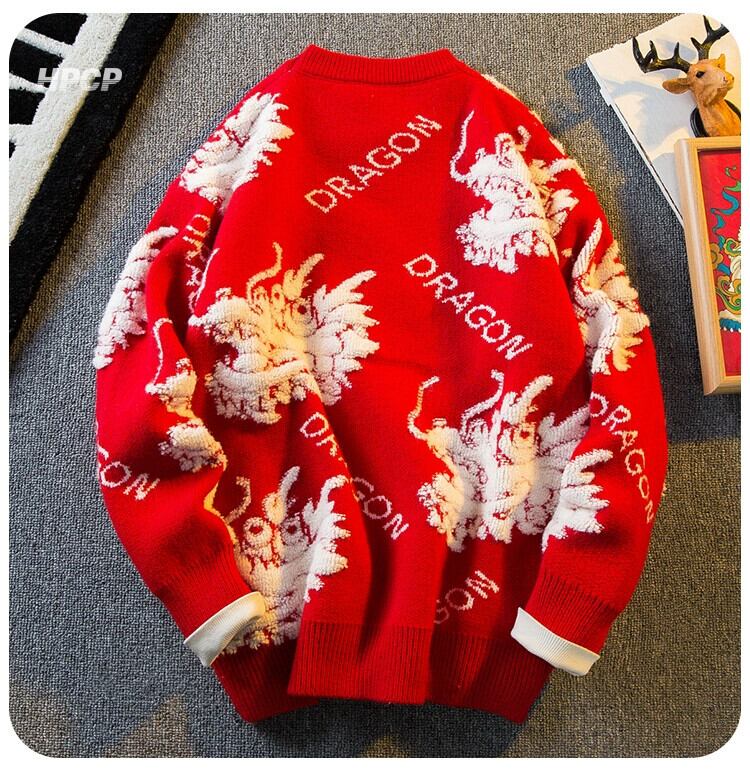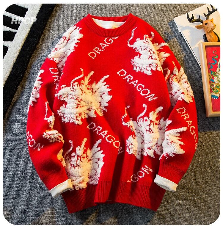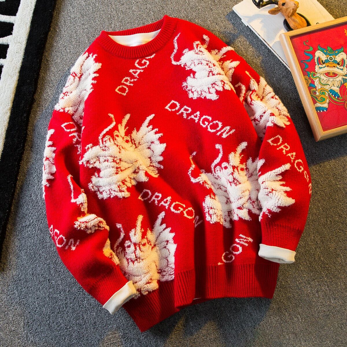 Hengpai トレンディなドラゴン年カップル赤セーターメンズ冬肥厚インナーベースレイヤーセーターセーター年のセーター レッド ウィンター 冬物 3381965436842633