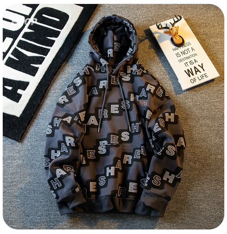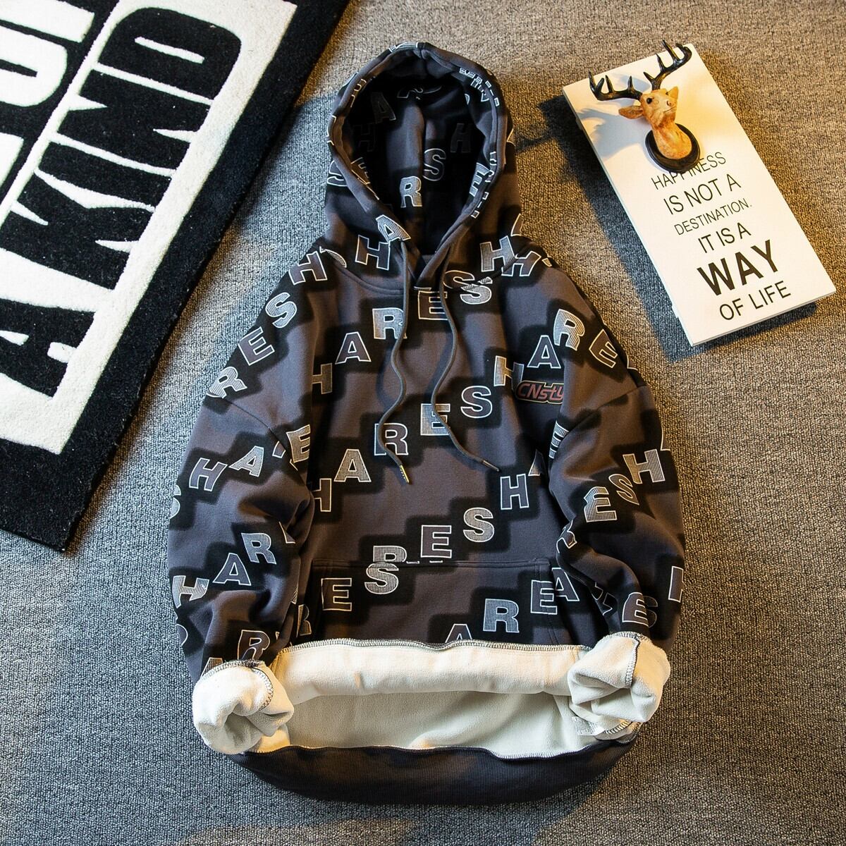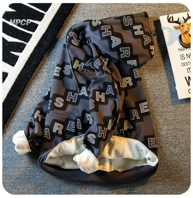 Hengpai トレンディなアメリカンスタイルのフルプリントフード付きスウェットシャツメンズ、秋と冬プラスベルベットと厚みのあるヨーロッパとアメリカのトレンディなブランドのルーズヒップホップジャケット オータム 秋物 ウィンター 冬物 ヨーロピアン 3381996120835119