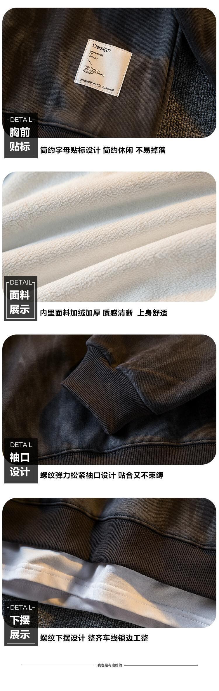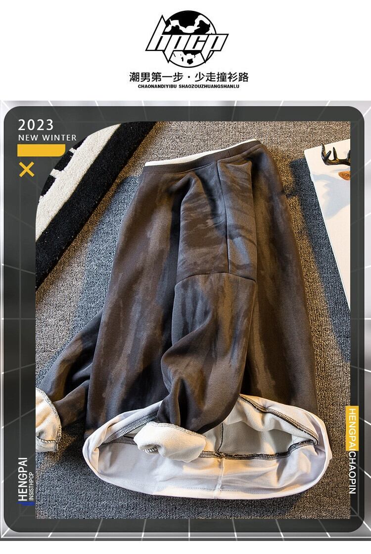 秋冬の横型スタイルのトレンディなアメリカンタイダイフェイクツーピーススウェットシャツメンズ、ベルベットと厚みのあるボトムシャツ、長袖ルーズトップ ロング オータム 秋物 ウィンター 冬物 3381936756191643