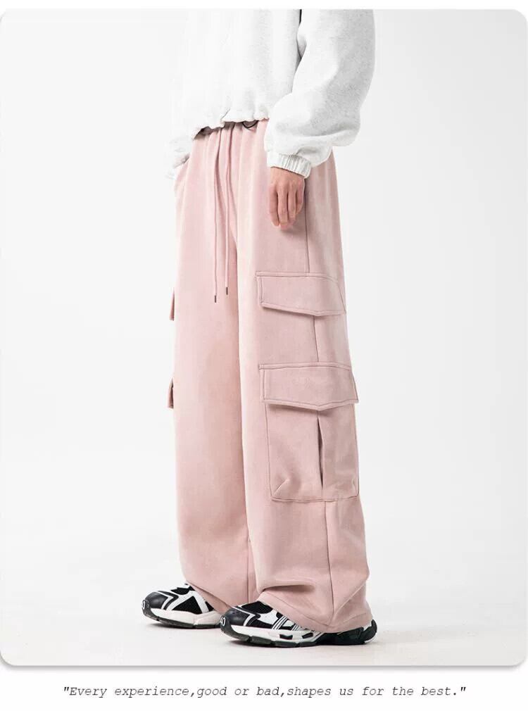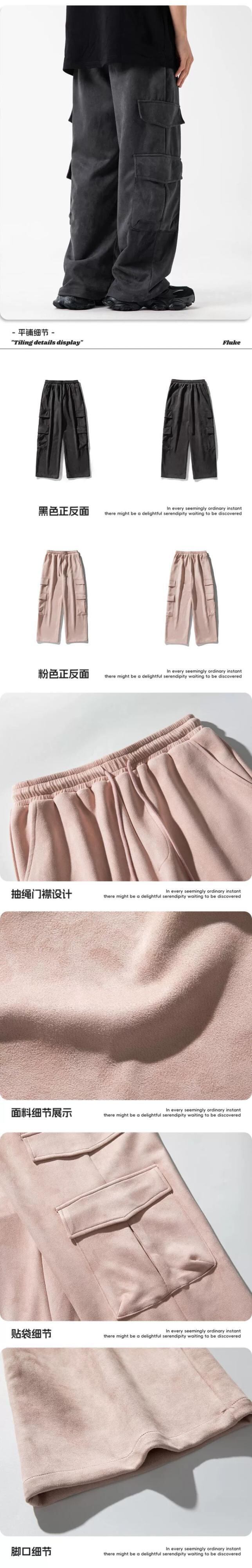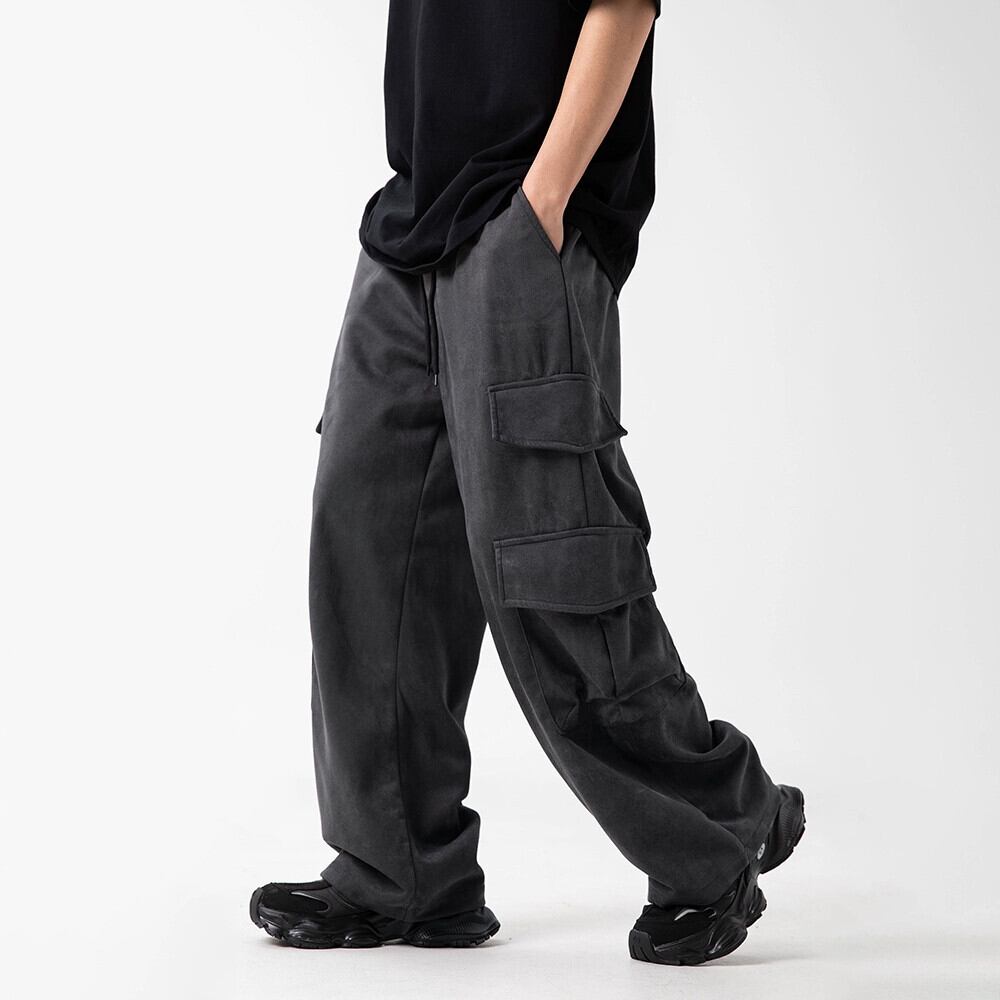 横型トレンディアメリカンスエードストレートオーバーオールメンズ秋冬トレンディブランドドレープワイドレッグパンツルーズカジュアルスウェットパンツ スウェード オータム 秋物 ウィンター 冬物 3381984655076166