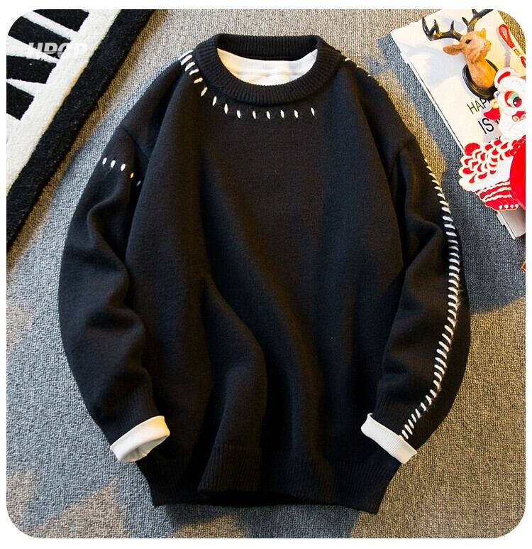 Hengpai トレンディな冬赤干支年厚いニットセーター男性年プラスベルベット肥厚デザインセーター レッド ウィンター 冬物 3381997643681473