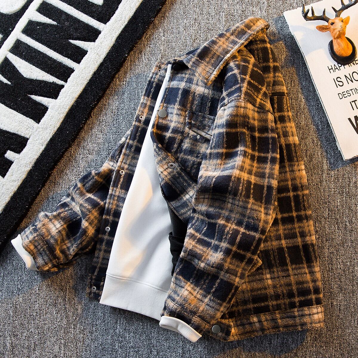 Hengpai トレンディなアメリカン レトロ チェック柄の小さな香りの良いウール ジャケット メンズ秋冬トレンディ ブランド ハイエンド カジュアル ジャケット オータム 秋物 ウィンター 冬物 3381944647636853