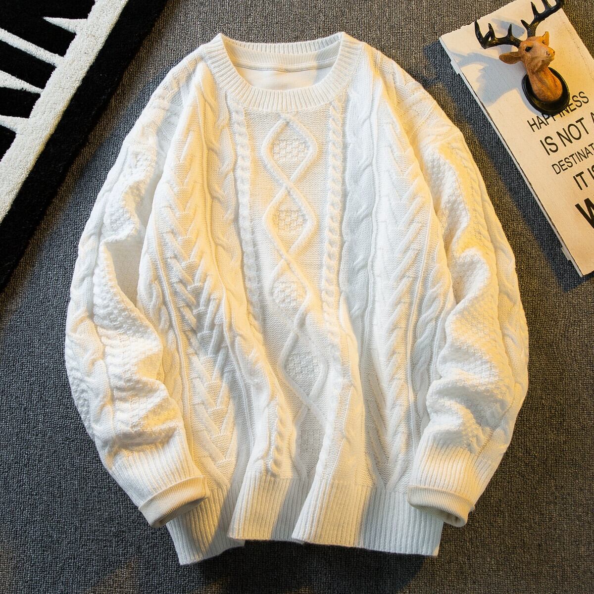 水平トレンディヴィンテージレトロ織りツイストセーターメンズ秋冬トレンディブランド怠惰なスタイル厚いウールセーター オータム 秋物 ウィンター 冬物 ビンテージ 33819577559333