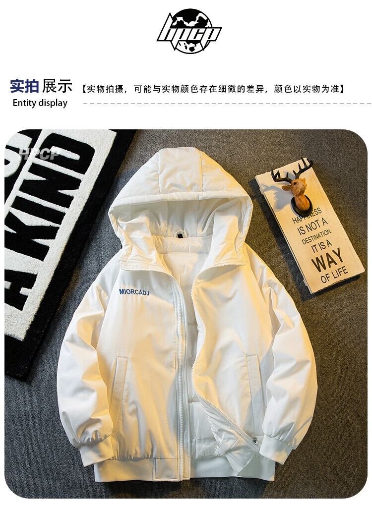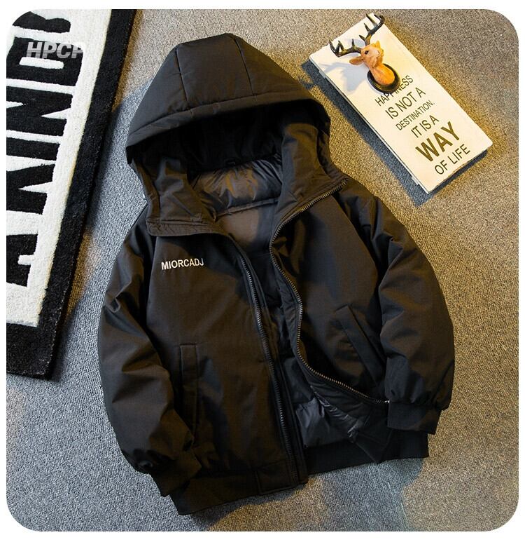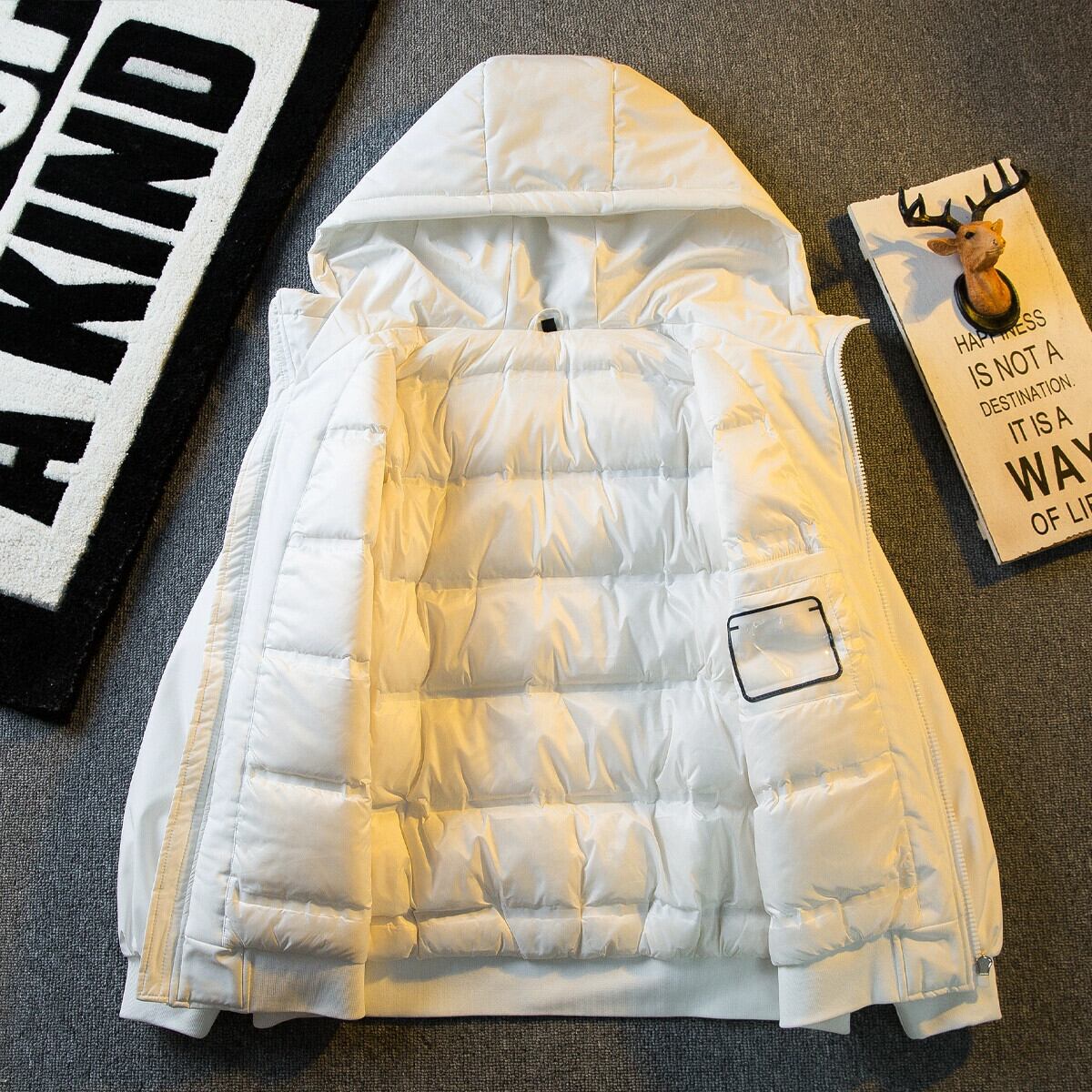 Hengpai トレンディなアメリカのトレンディなブランド冬笑顔ダウンジャケット男性 2023 新しいフード付き暖かいホワイトダックダウンジャケット男性 ウィンター 冬物 3381911302069338