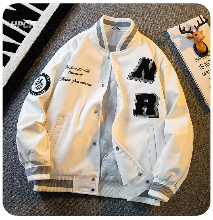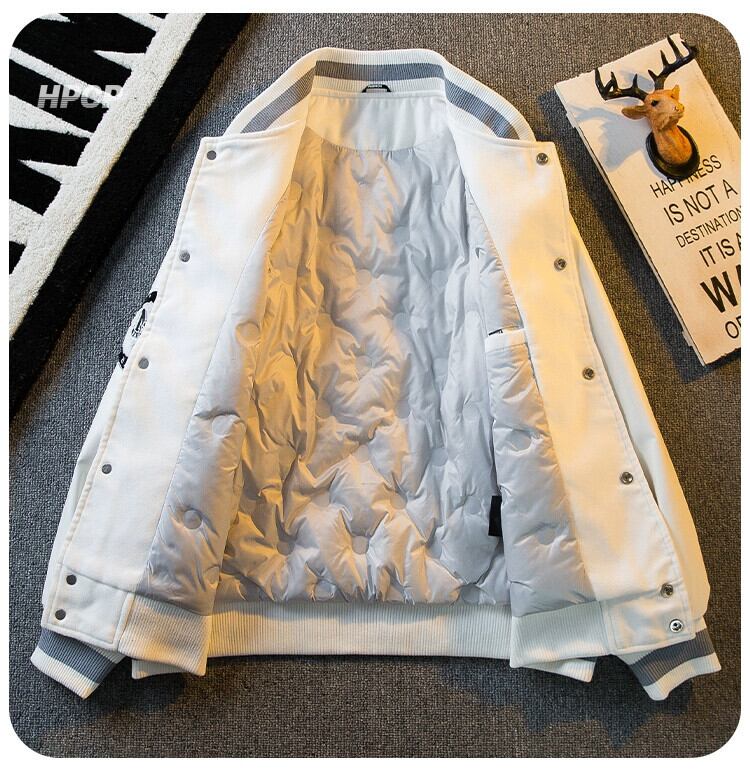 Hengpai トレンディなアメリカンレトロ刺繍野球ジャケットダウンジャケットメンズ秋冬カジュアルジャケットダウンジャケット綿ジャケット レッド コットン オータム 秋物 ウィンター 冬物 3381954348182527