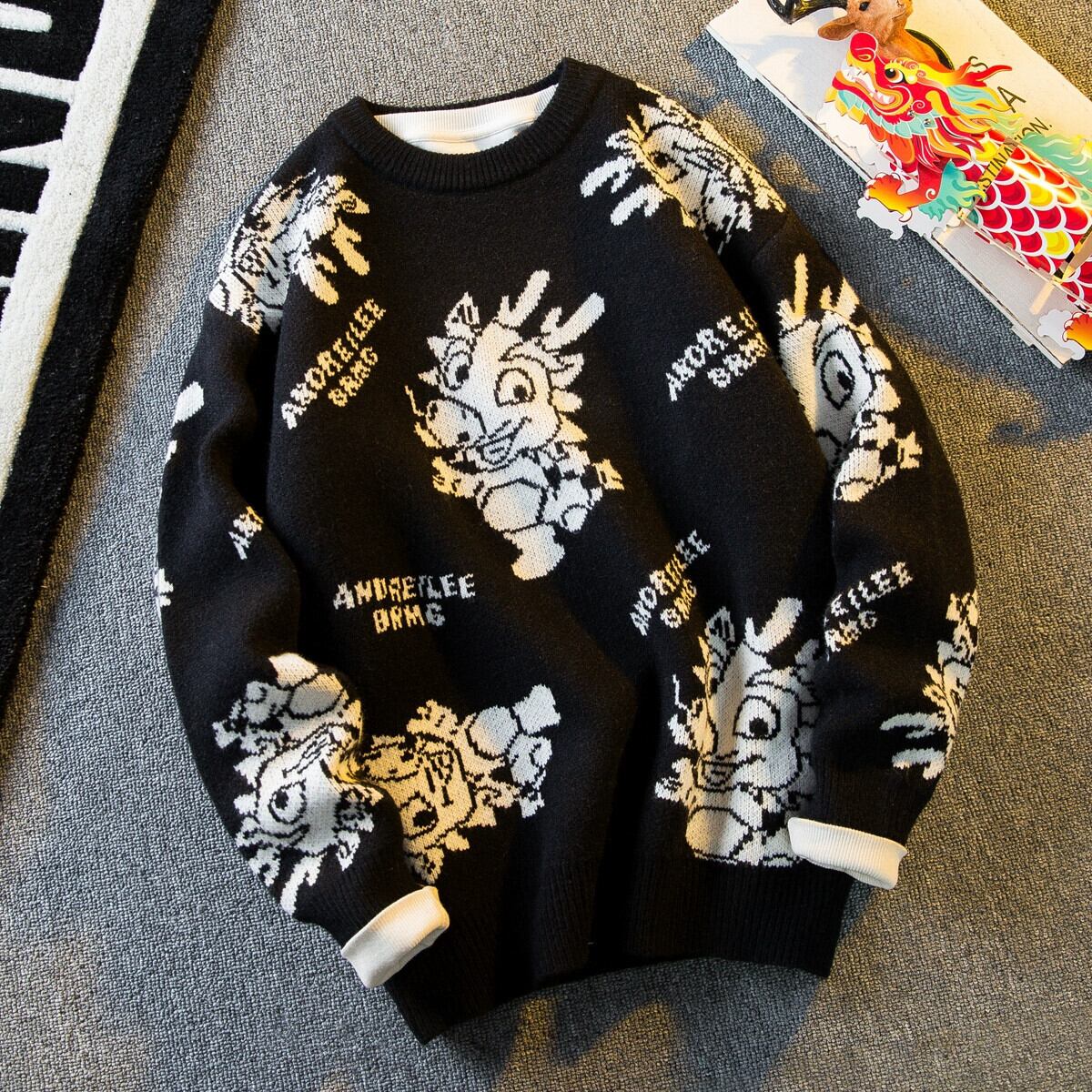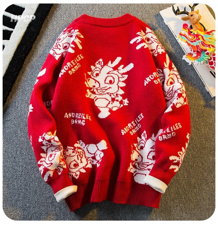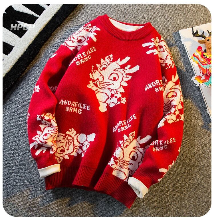 Hengpai トレンディなイヤーズ カップル セーター、秋冬の男性と女性、厚いジャカード セーター、怠惰なスタイルの大晦日セーター オータム 秋物 ウィンター 冬物 3381940732877181