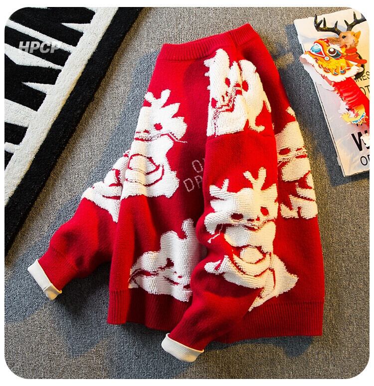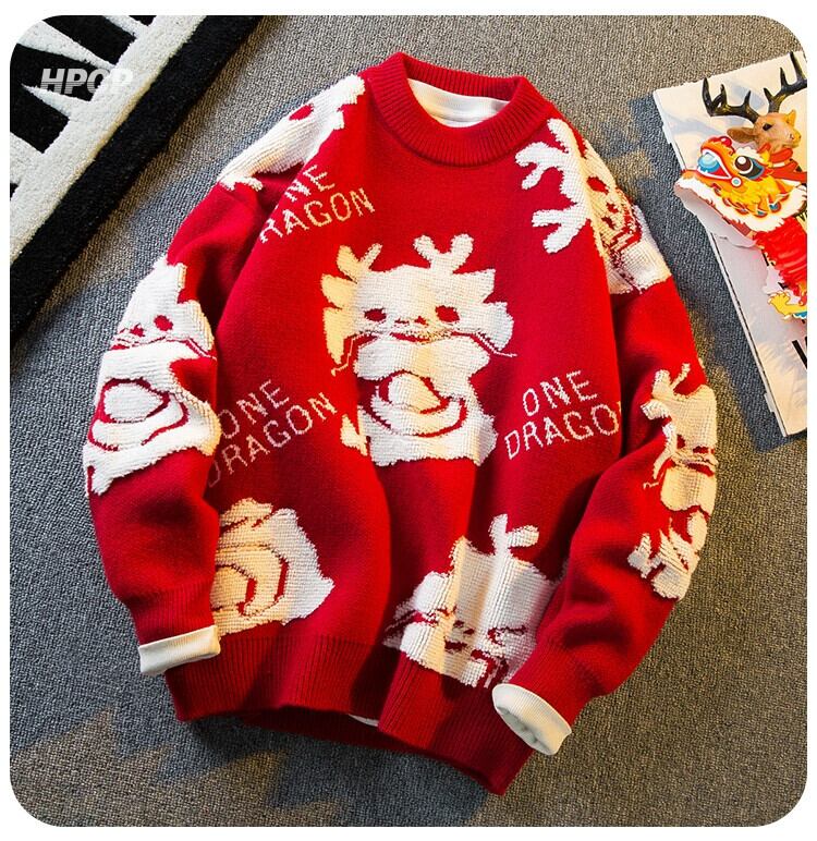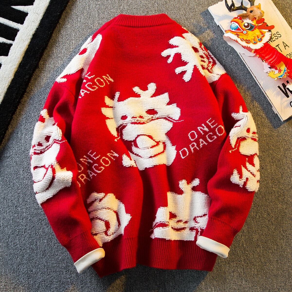Hengpai トレンディなイヤーセーターの男性と女性、カップルスタイル、お祭りの雰囲気、トレンディなブランドのセーター、ドラゴンのセーター 3381933331429099