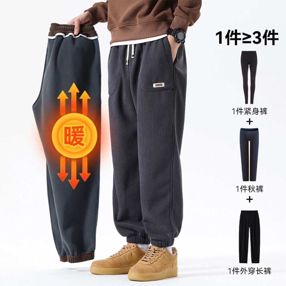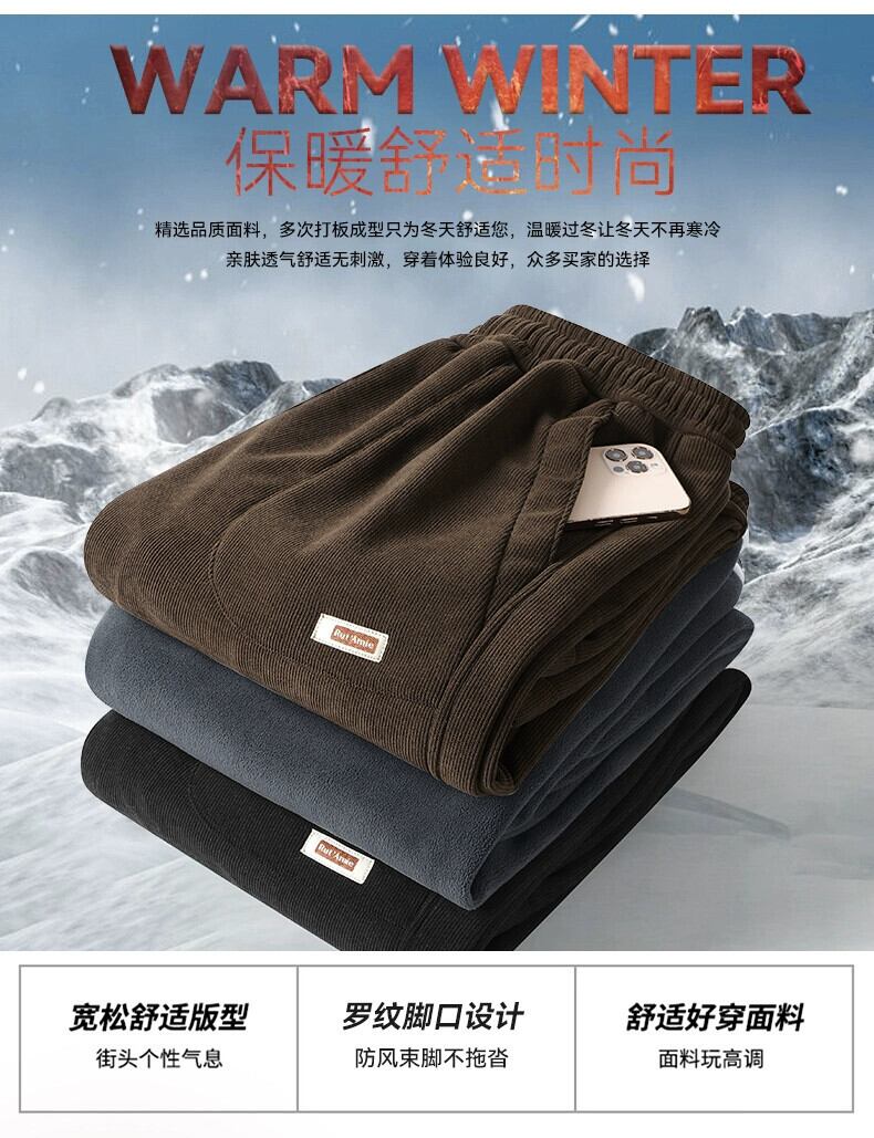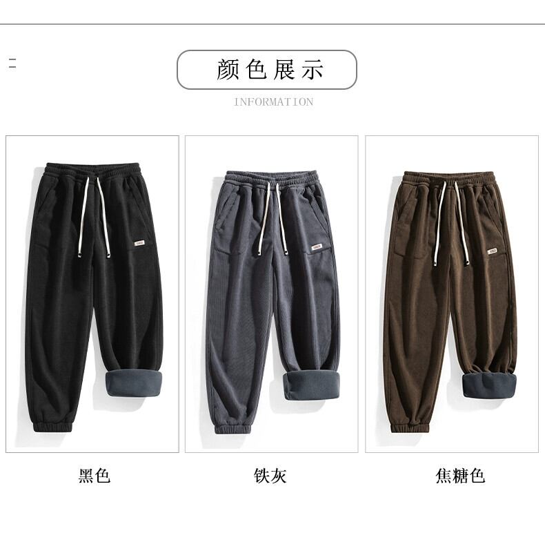 Hengpai トレンディなアメリカンレトロ肥厚ベルベットスウェットパンツメンズ秋冬暖かいコーデュロイドレープカジュアルパンツ男性 オータム 秋物 ウィンター 冬物 3381922951004223