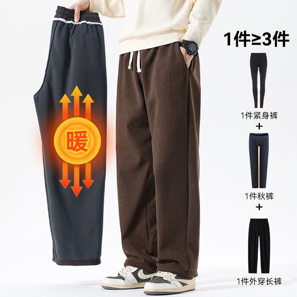 Hengpai トレンディな冬ベルベット肥厚ヘビーコーデュロイスウェットパンツメンズストレートルーズスポーツパンツメンズ秋と冬 オータム 秋物 ウィンター 冬物 3381930400034130