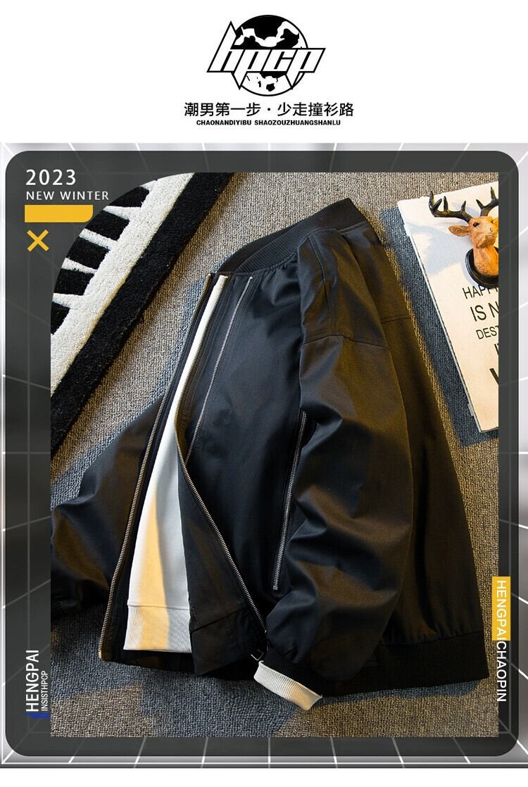 Hengpai トレンディなアメリカのワークウェア ボンバー ジャケットの男性の春と秋のハイストリート ファッション ブランドの雰囲気の野球ジャケット スプリング 春物 オータム 秋物 3381913242911755
