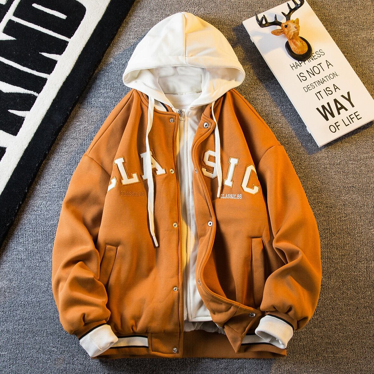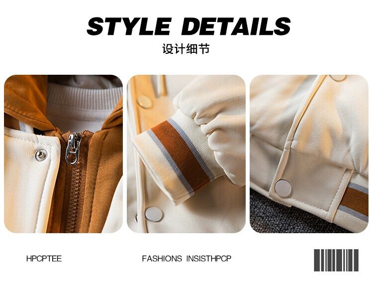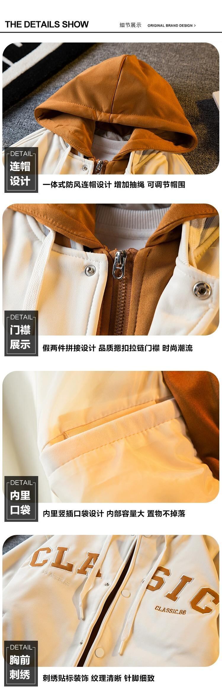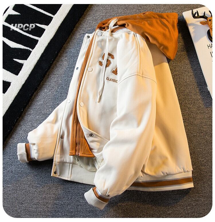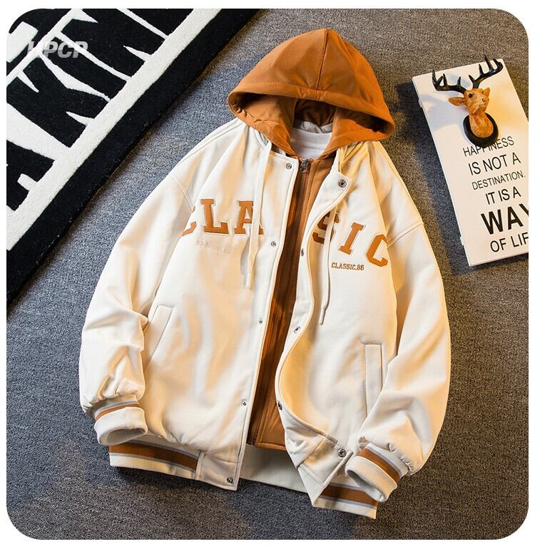 Hengpai 流行の偽ツーピースフード付き刺繍野球ジャケットメンズ春と秋のアメリカのファッションブランドルーズスウェットシャツジャケット レッド スプリング 春物 オータム 秋物 3381958716825673