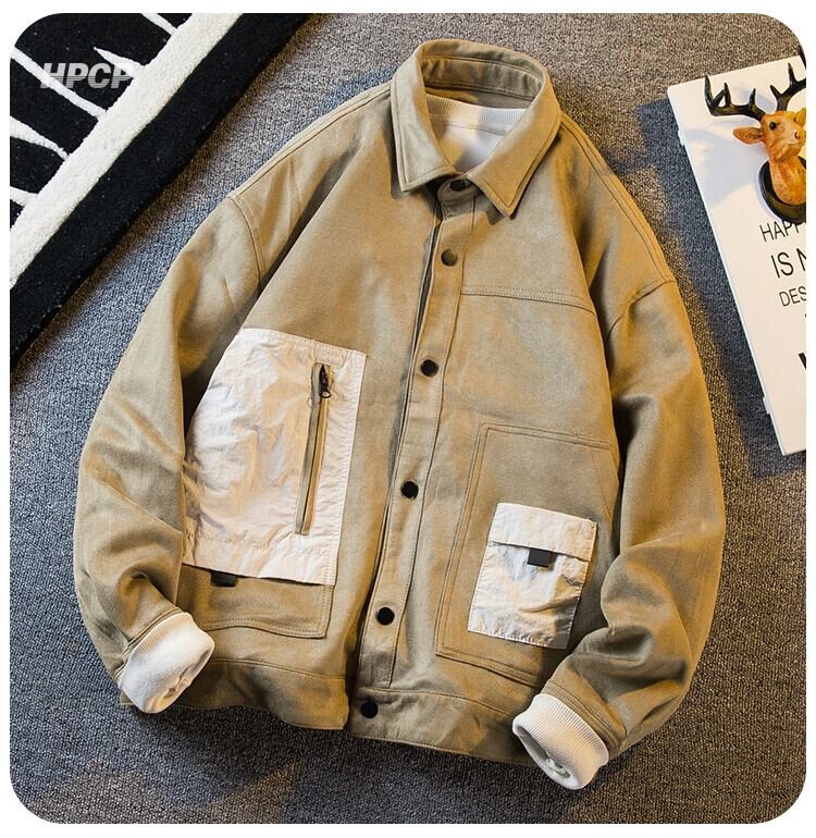 Hengpai トレンディな春レトロスエードワークジャケットメンズ春と秋のハイエンドハンサムカジュアルラペルジャケット スウェード スプリング 春物 オータム 秋物 3381917052188130