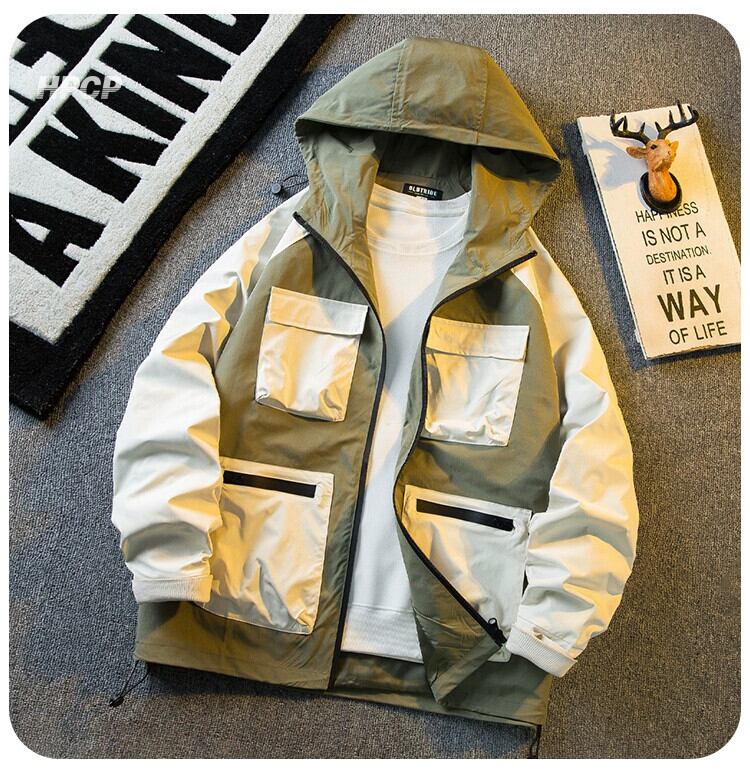 Hengpai トレンディマウンテンシリーズレトロ機能防水ジャケットメンズ春と秋の屋外マルチポケットワークジャケット スプリング 春物 オータム 秋物 ポケット多め 3381989651218370