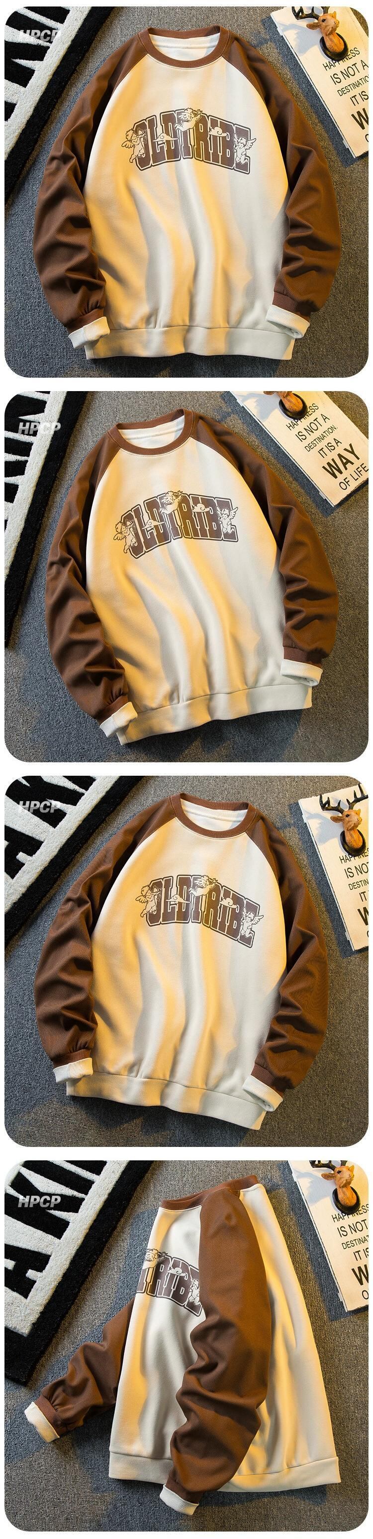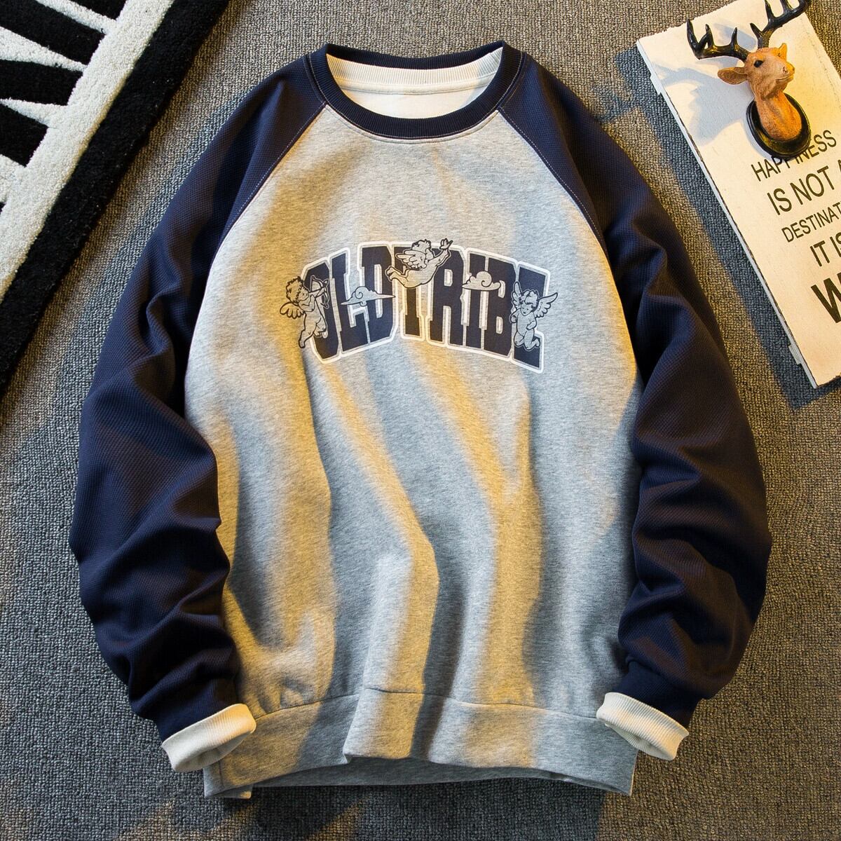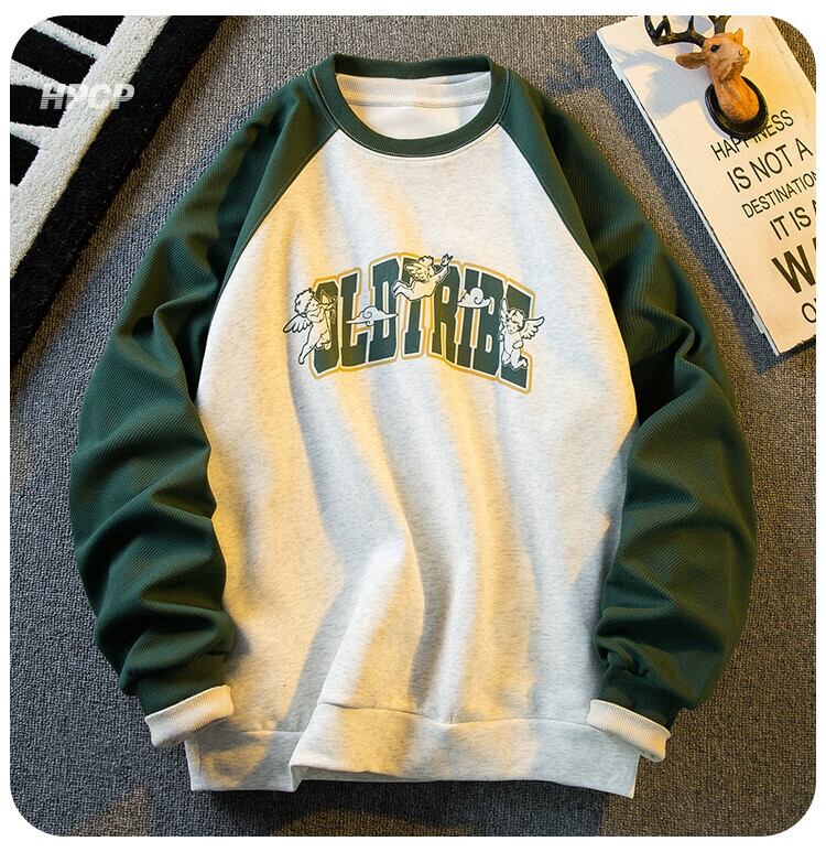 横型トレンディアメリカンカレッジスタイルコントラストカラーラウンドネック男女春秋カップルスタイルトレンディブランドルーズ長袖トップス ロング スプリング 春物 オータム 秋物 Oネック 3381960558121360