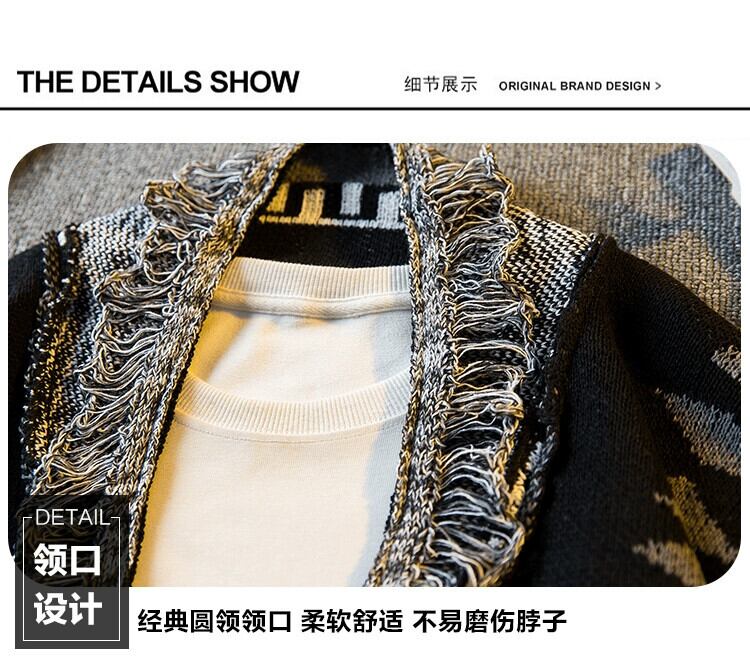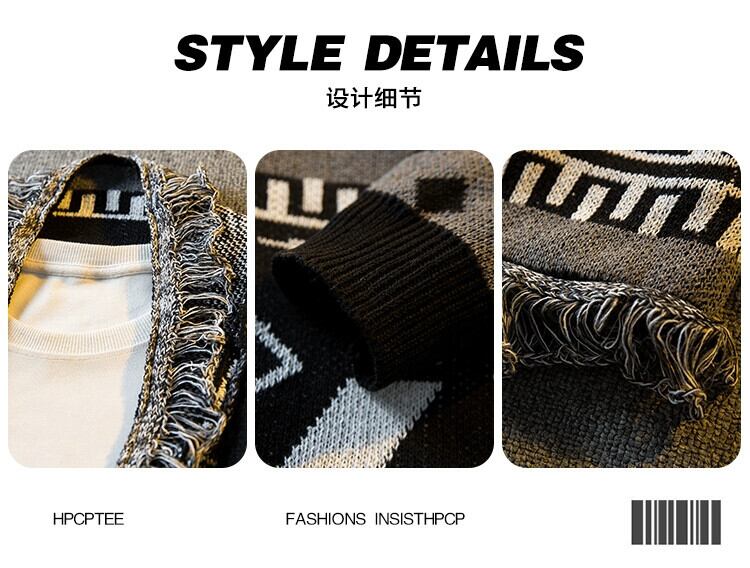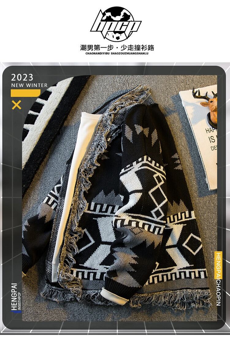 Hengpai トレンディなルーズで怠惰な V ネック ニット カーディガン セーター メンズ 春と秋のレトロなエスニック スタイル ニット セーター ジャケット スプリング 春物 オータム 秋物 Vネック 3381954747976689