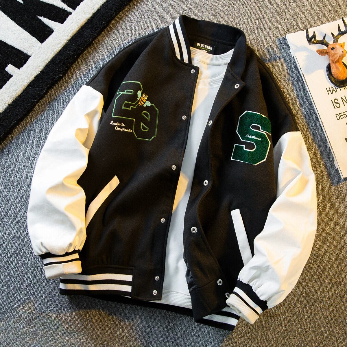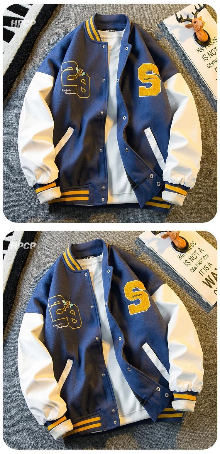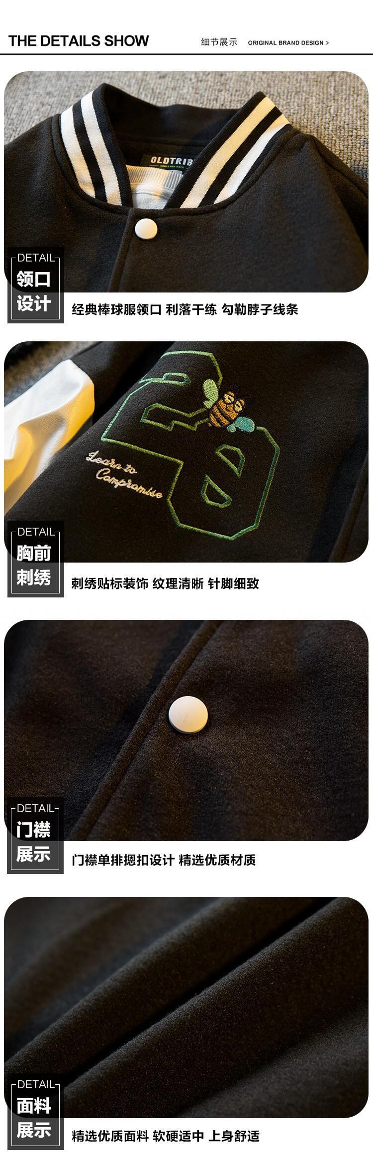 Hengpai トレンディなアメリカの重い刺繍野球ユニフォームメンズ 2024 春の新カジュアル肥厚ウールジャケット春と秋 レッド スプリング 春物 オータム 秋物 3381994824470083