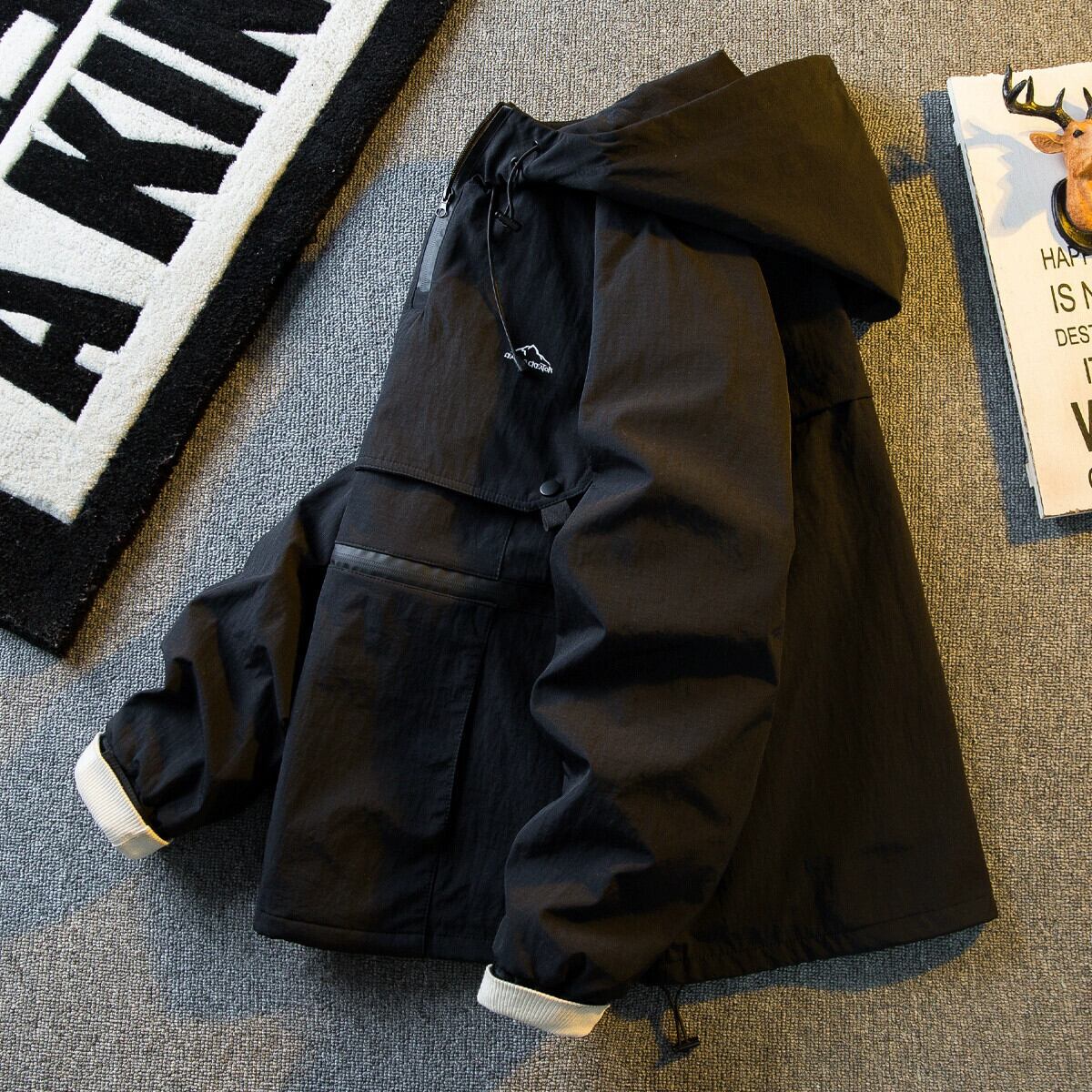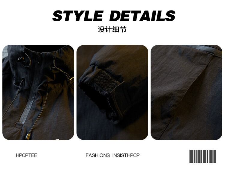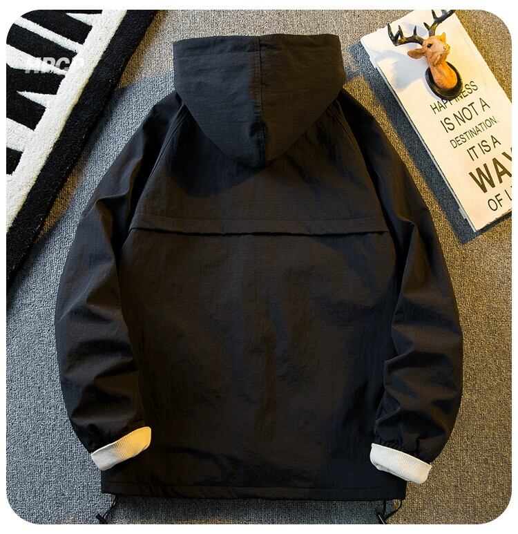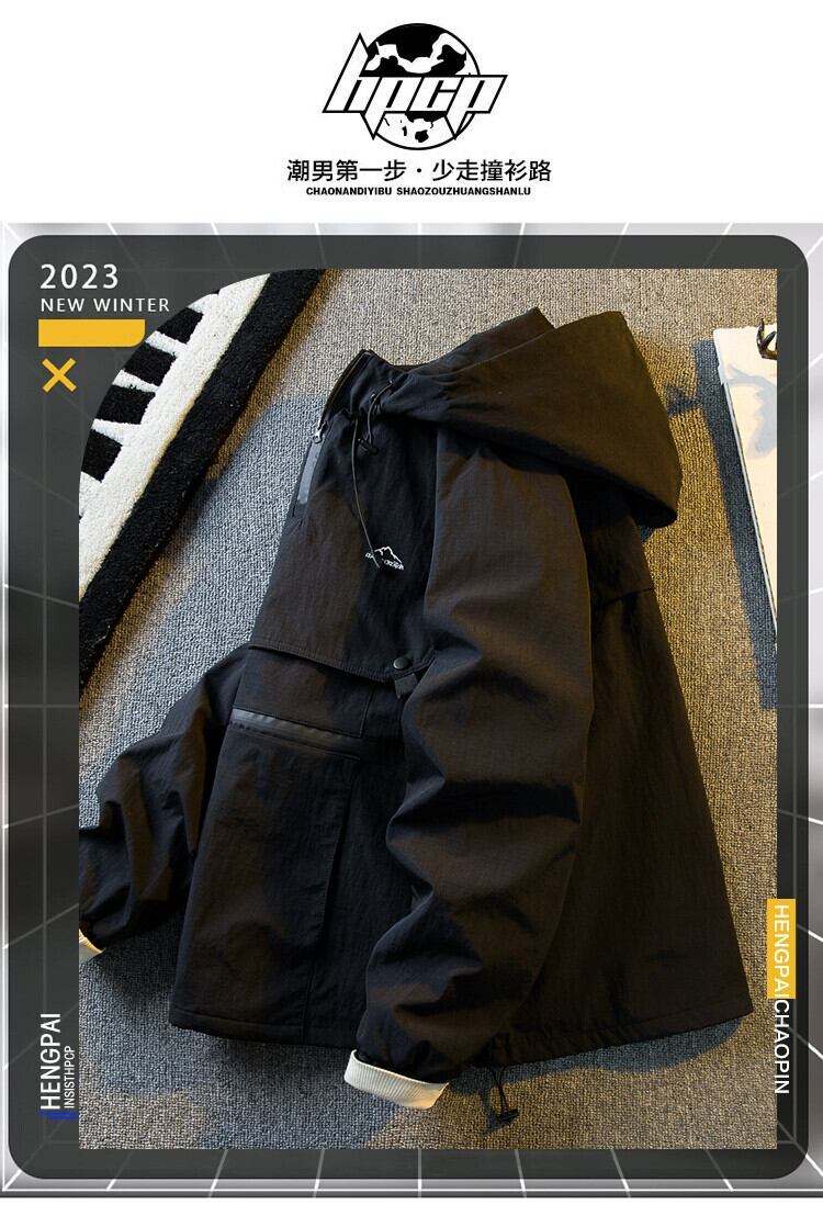 Hengpai トレンディなアメリカンレトロ無地フード付きワークジャケットメンズ春と秋のハイエンドハンサムカジュアルジャケット男性 スプリング 春物 オータム 秋物 ソリッドカラー 3381981455592417