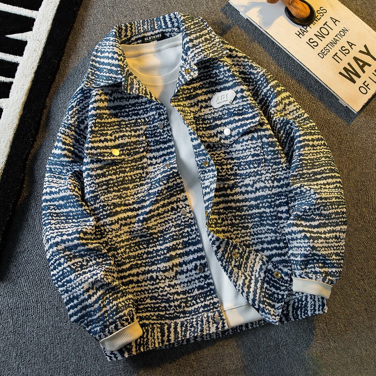 Hengpai トレンディなレトロツイード小さな香りのよいジャケットメンズ春服ハイエンドのハンサムなカップルルーズラペルジャケット スプリング 春物 3381968164153736