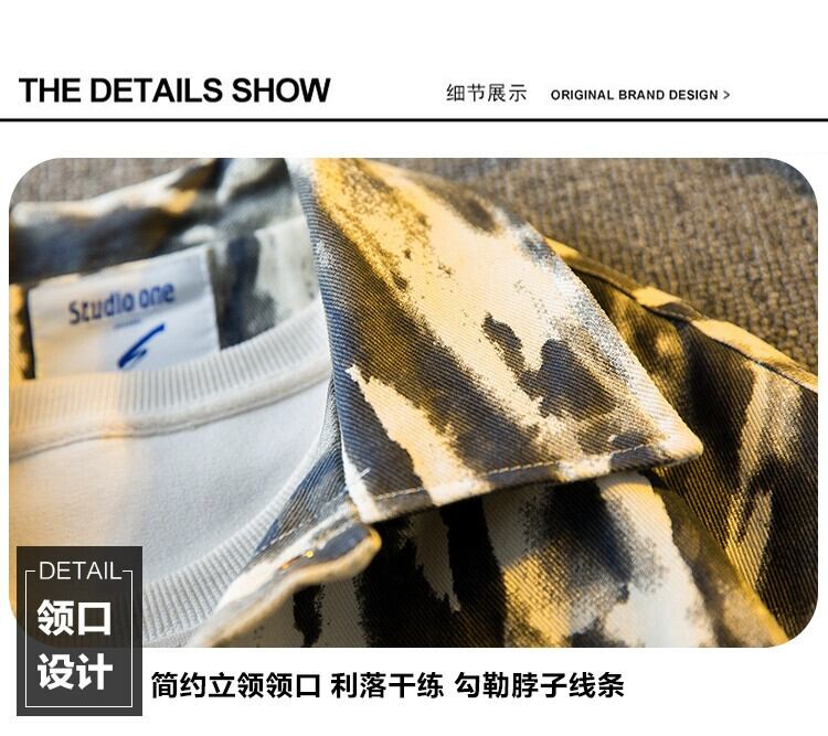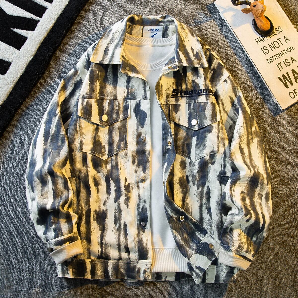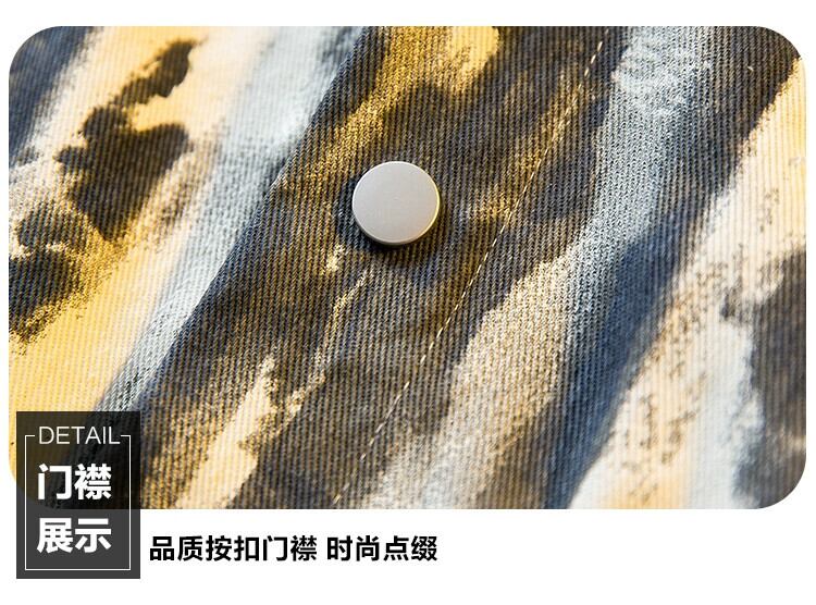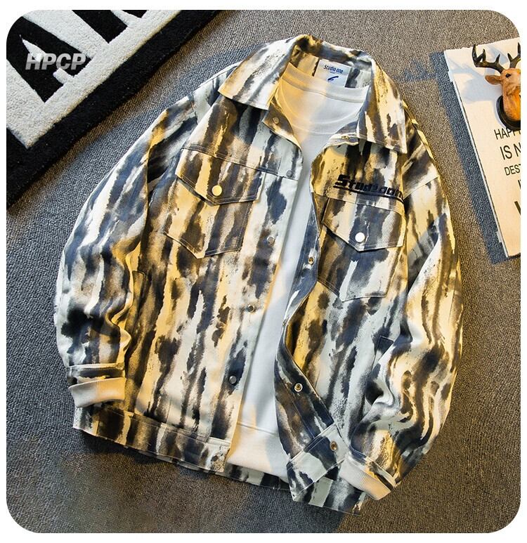 Hengpai トレンド春トレンドブランドアート絞り染めデニムジャケットメンズルーズワークウェアジャケットメンズカジュアルトップ スプリング 春物 3381950432438496
