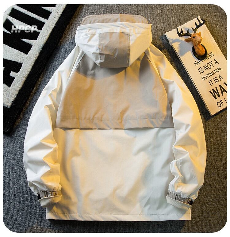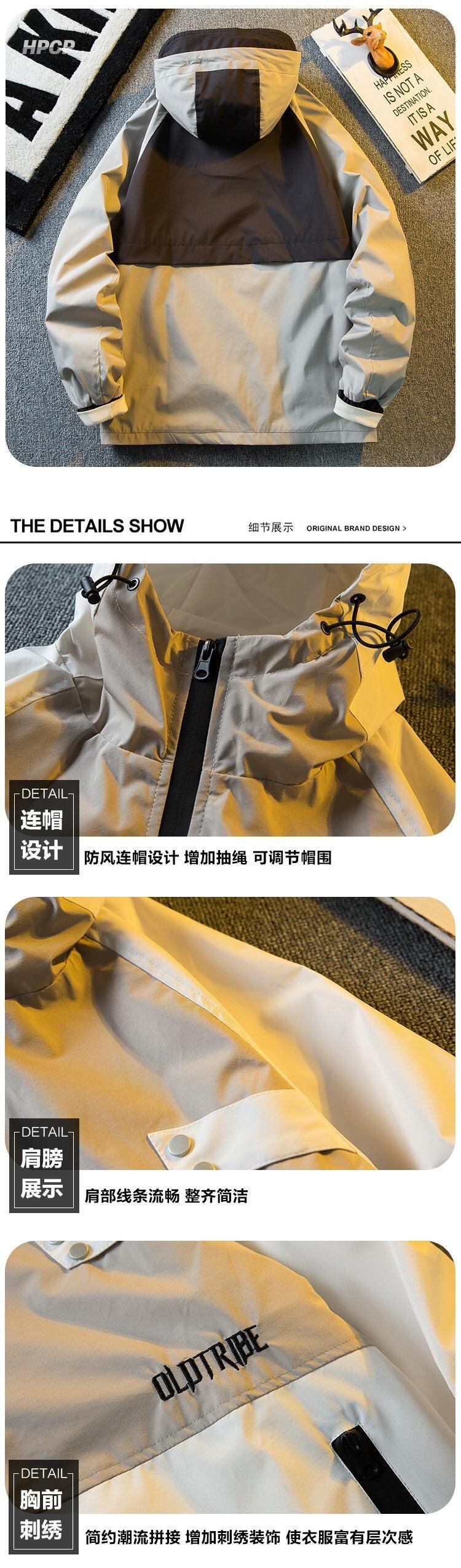 Hengpai トレンディなアメリカン アウトドア スプライシング フード付き防風ジャケット ジャケット メンズ 春と秋のメンズ カジュアル ワークウェア ジャケット スプリング 春物 オータム 秋物 3381948070368603