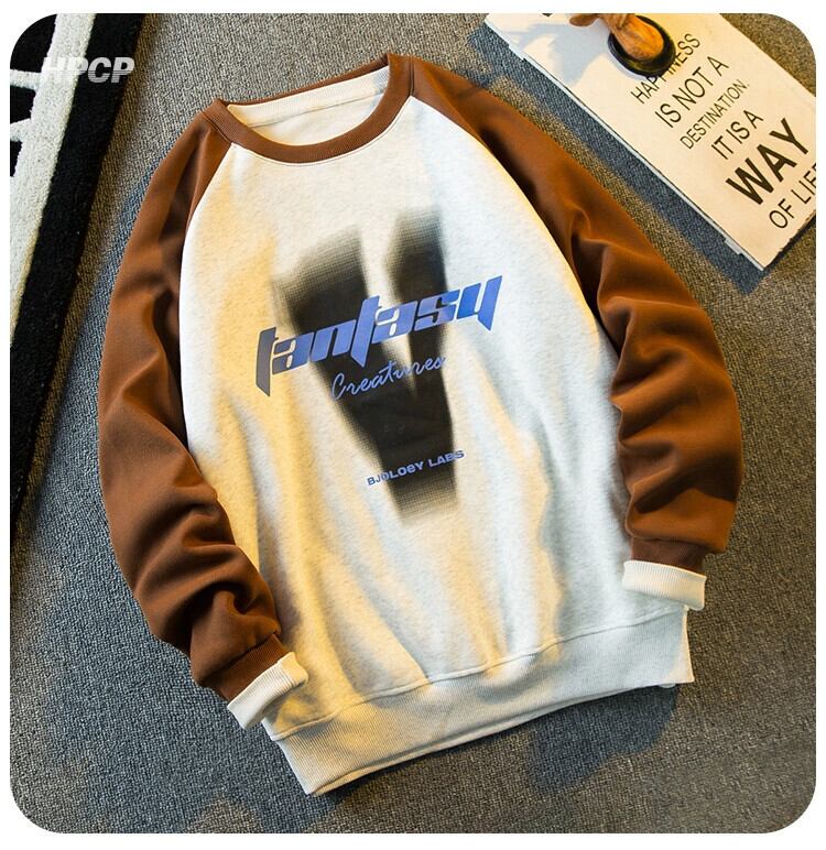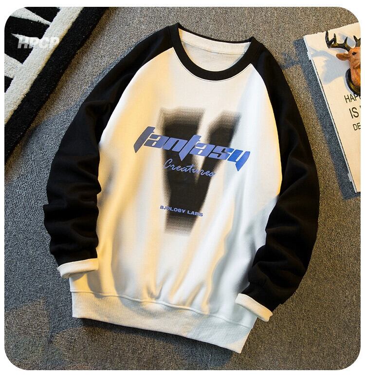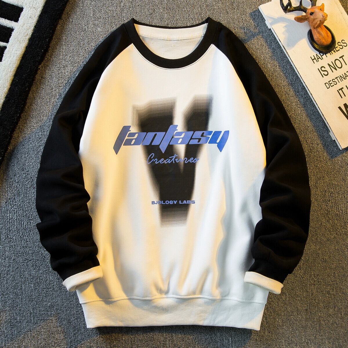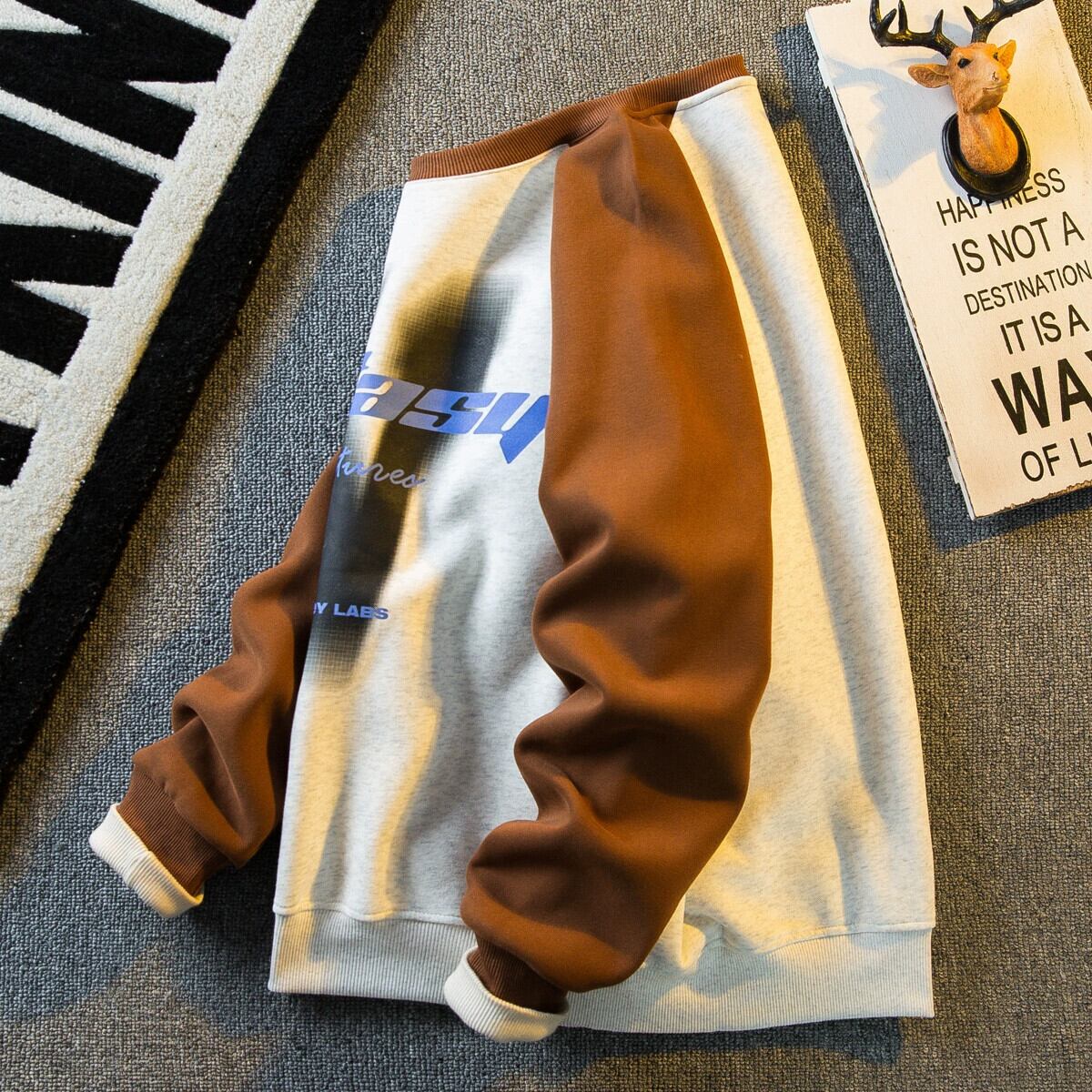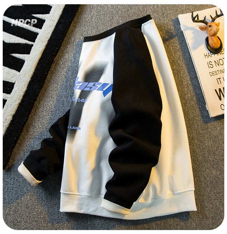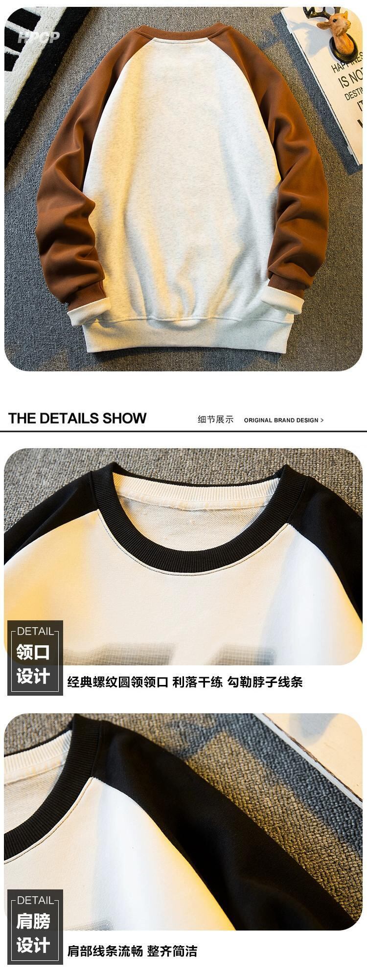 Hengpai トレンディなアメリカンヘビーウェイトコントラストカラースプライシングラウンドネックスウェットシャツメンズ秋冬イントレンディなブランドルーズトップボトリングシャツ オータム 秋物 ウィンター 冬物 Oネック 3381919383992748