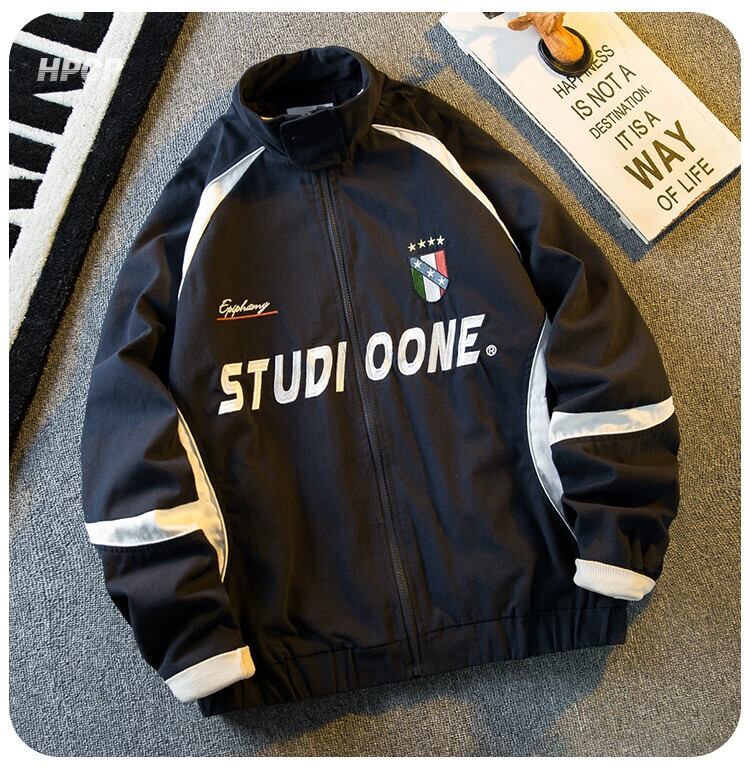 Hengpai トレンディなアメリカンストリート刺繍レーシングスーツジャケットメンズ春と秋のハンサムなスタンドカラーオートバイジャケット春服 レッド スプリング 春物 オータム 秋物 3381956823177043