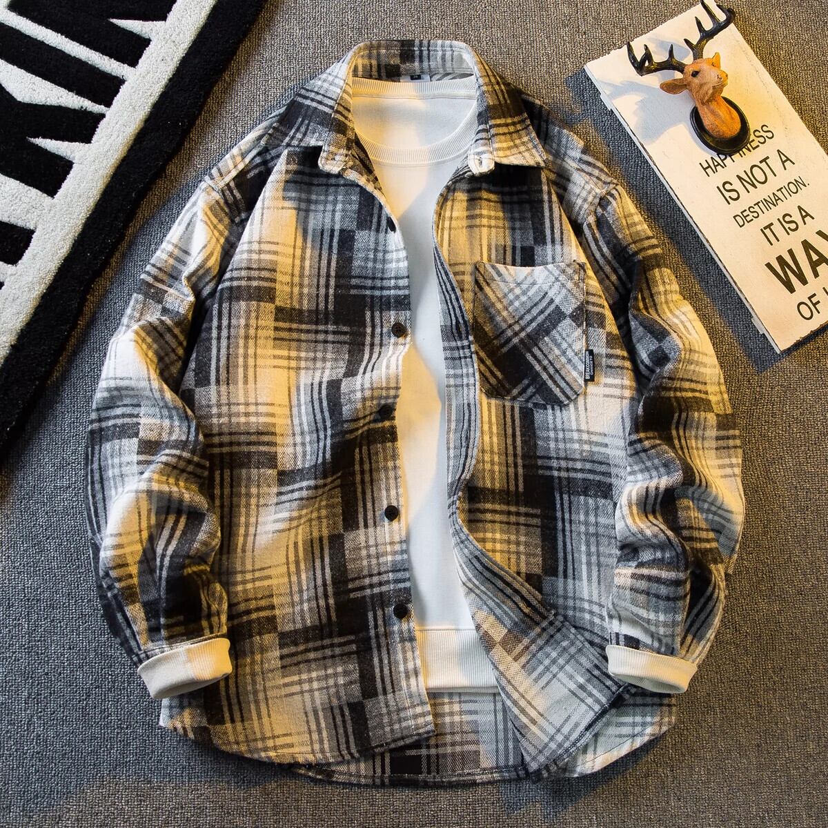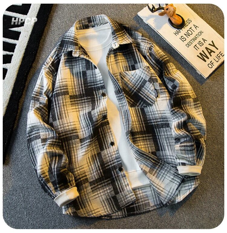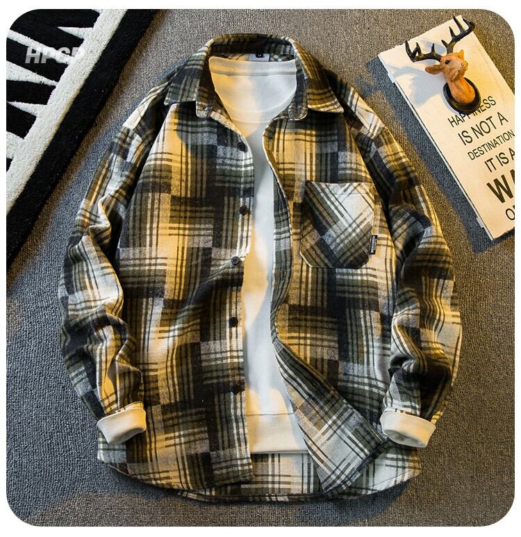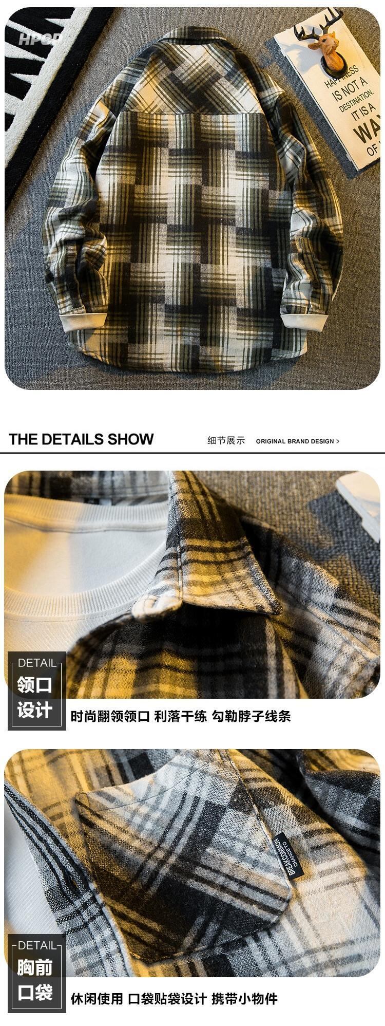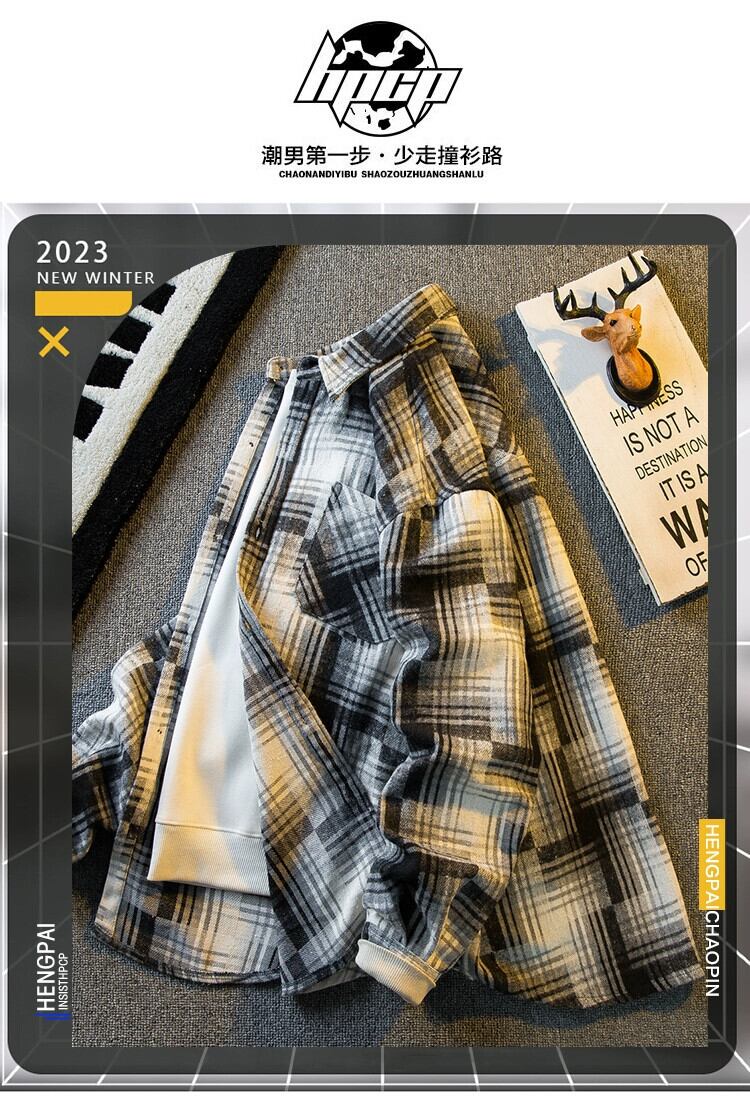 Hengpai トレンディな厚手の厚みのあるウールチェック柄長袖シャツメンズ春と秋のメンズトレンディなブランドのハイエンドシャツジャケット ロング スプリング 春物 オータム 秋物 3381995796405054