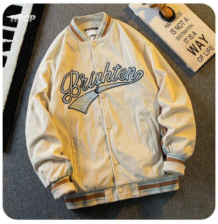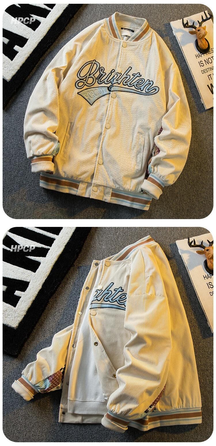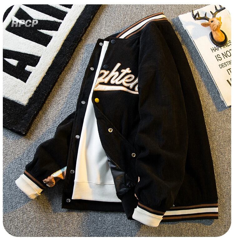 Hengpai トレンディな厚手レトロコーデュロイジャケットメンズ春秋アメリカンファッションブランド刺繍雰囲気スタイル野球ジャケット レッド スプリング 春物 オータム 秋物 3381967888632333