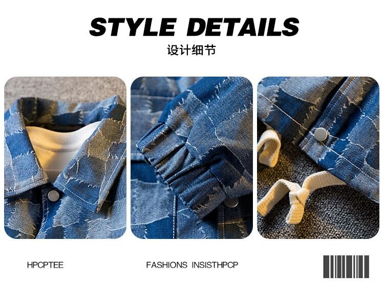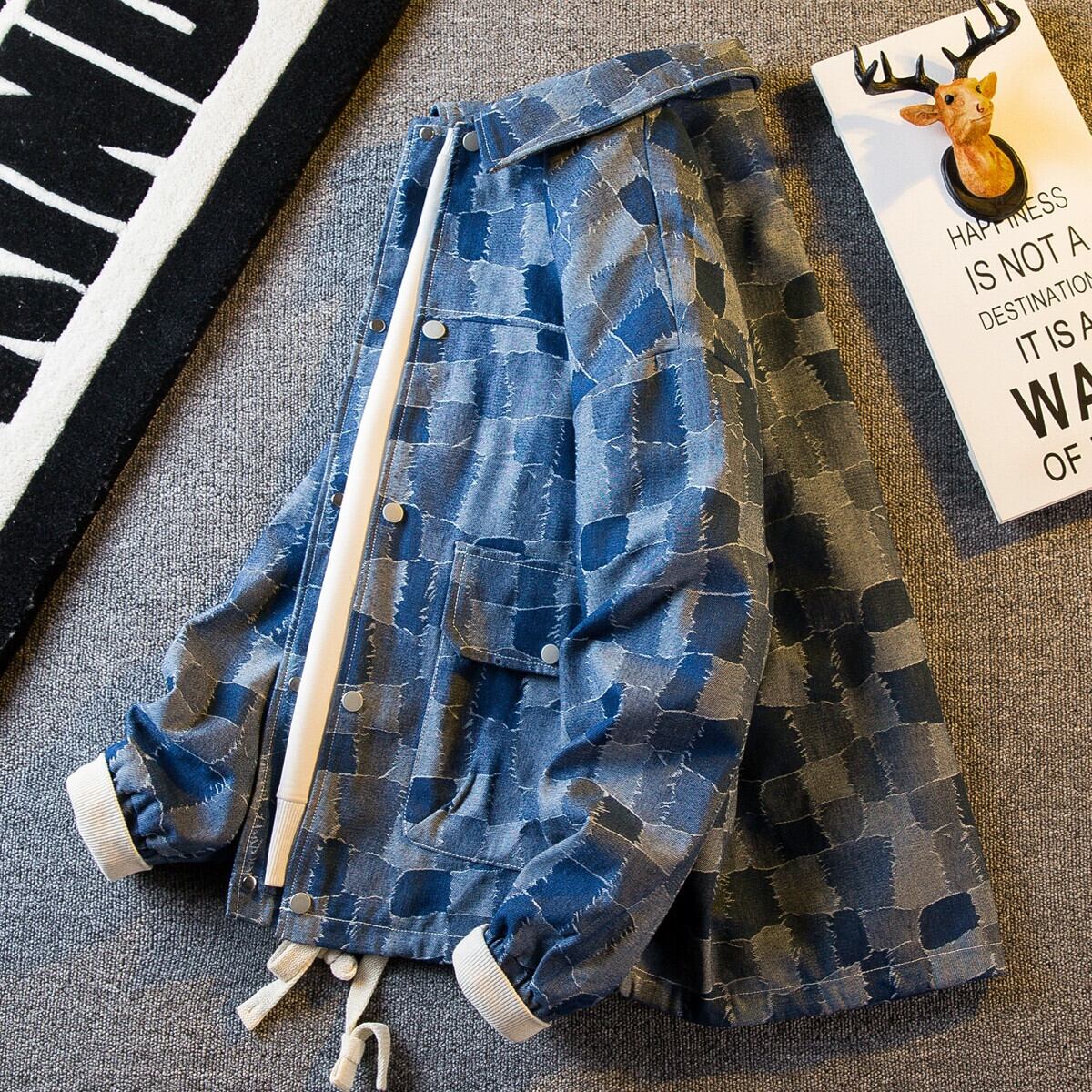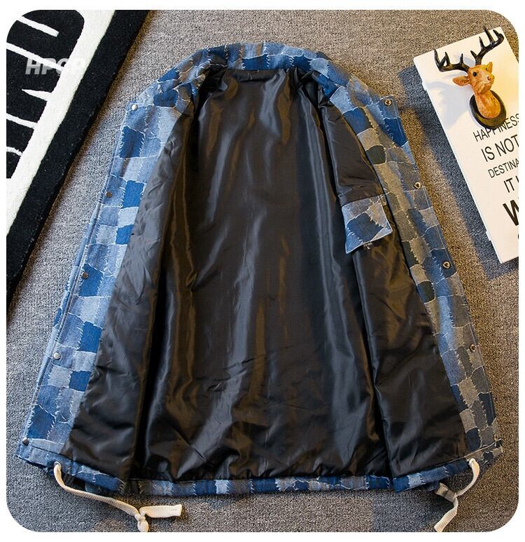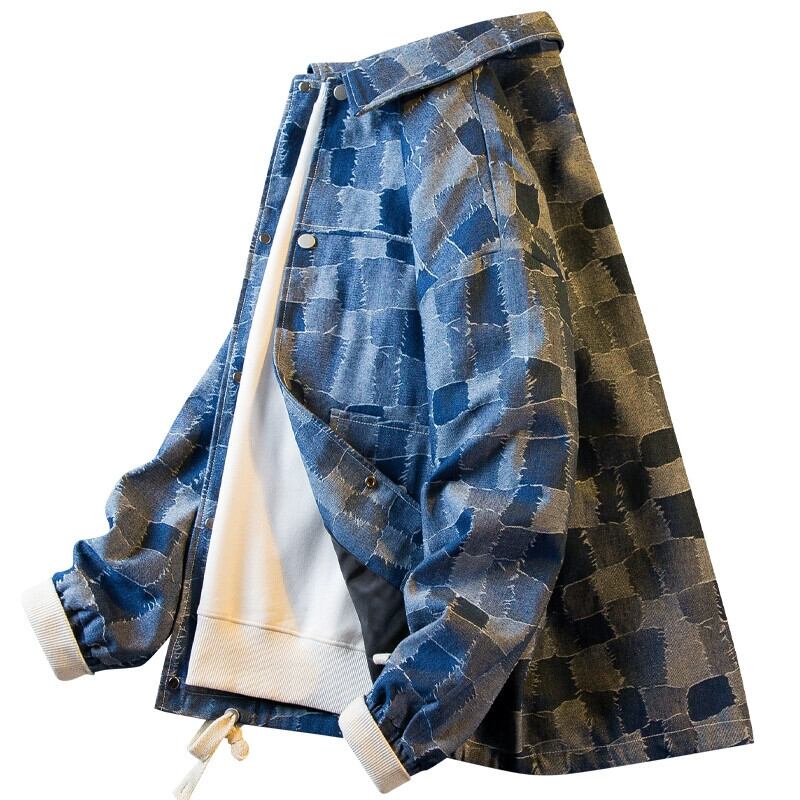横型トレンディーなレトロチェック柄デニムシャツメンズ長袖春秋トレンディブランドワークコートラペルジャケット ロング スプリング 春物 オータム 秋物 3381938952303321