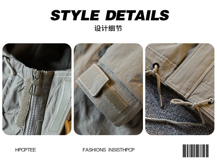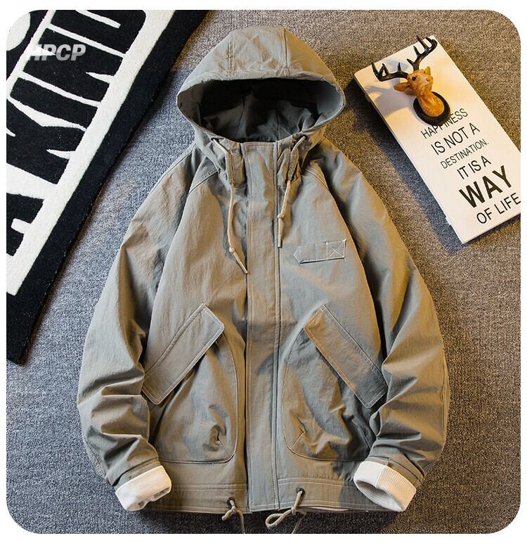 Hengpai トレンディなアメリカンレトロアウトドアフード付きジャケットメンズ春と秋のメンズワークジャケットハンサムジャケット スプリング 春物 オータム 秋物 3381914535590429
