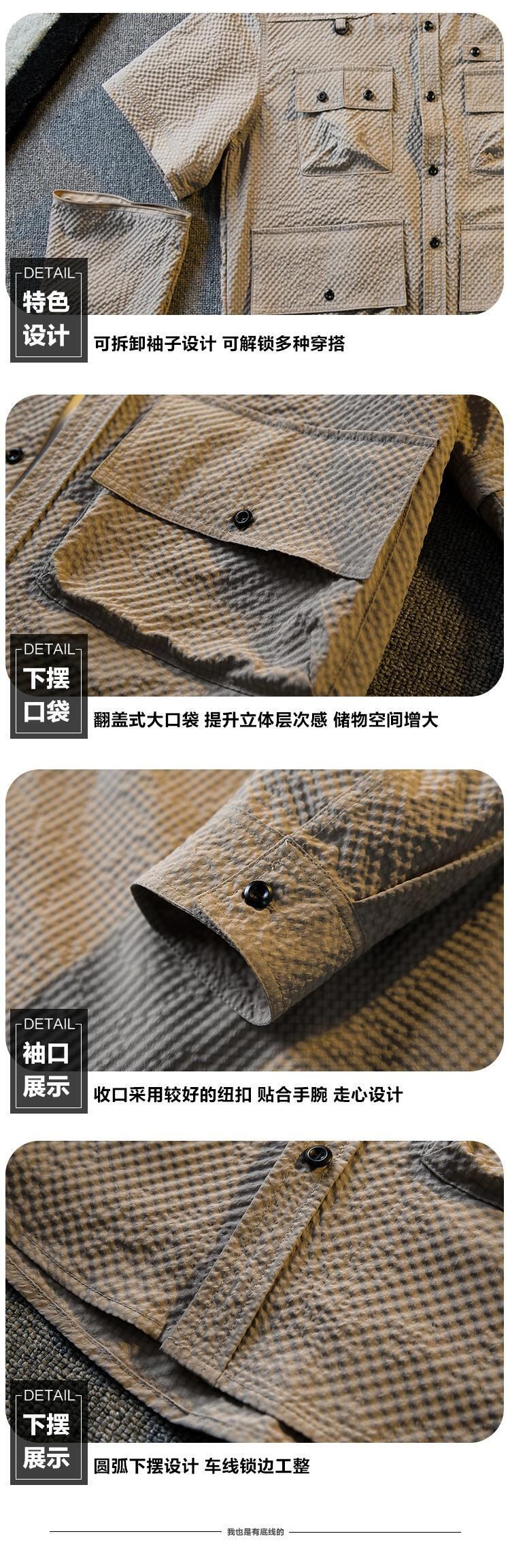 横型トレンディエーゼスタイル機能性ワークシャツメンズ長袖取り外し可能な半袖アウトドアツーウェアデザインシャツ ロング 3381971113106638