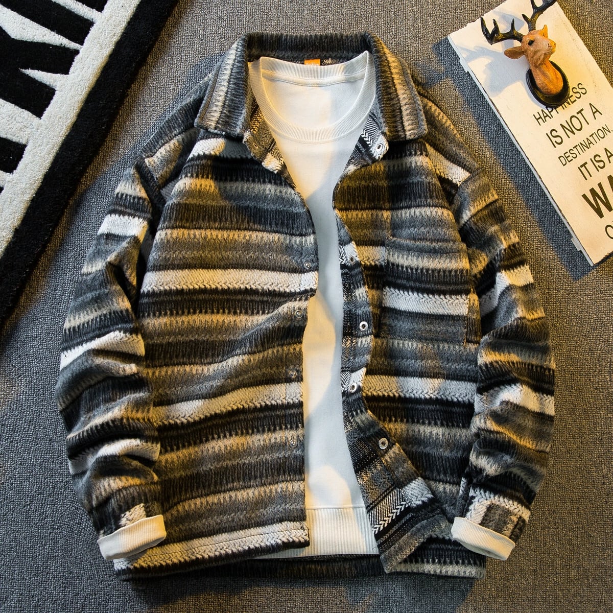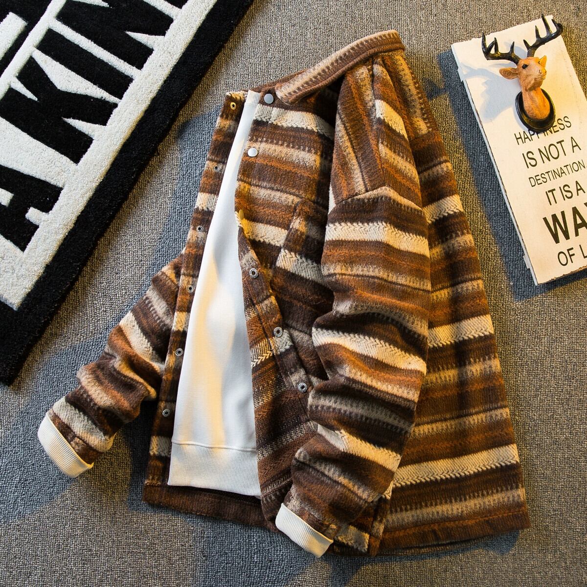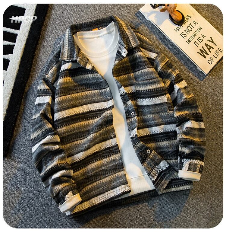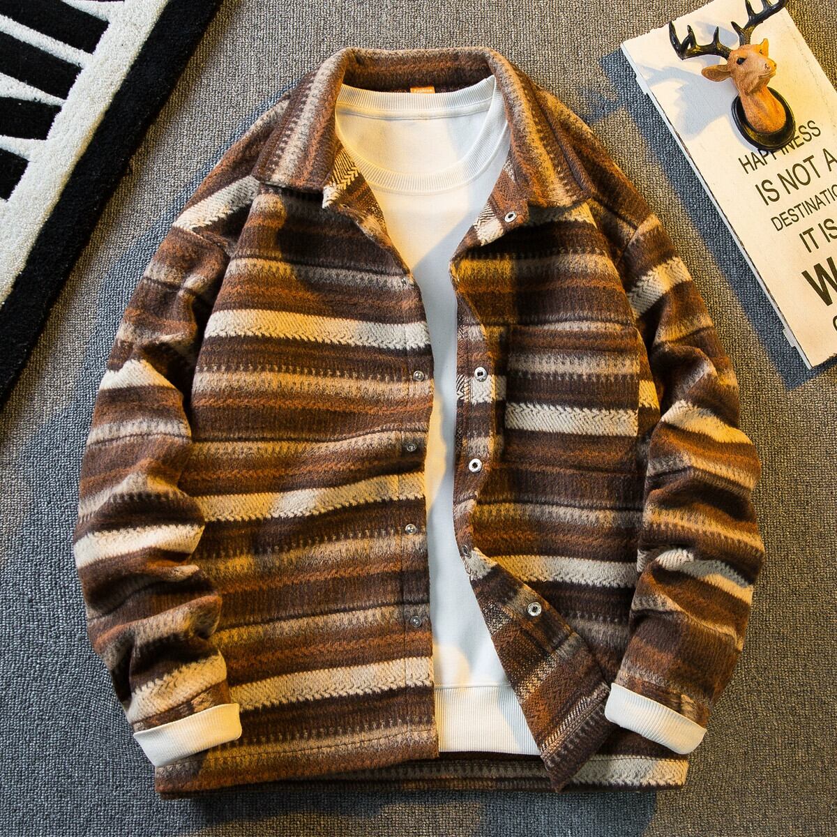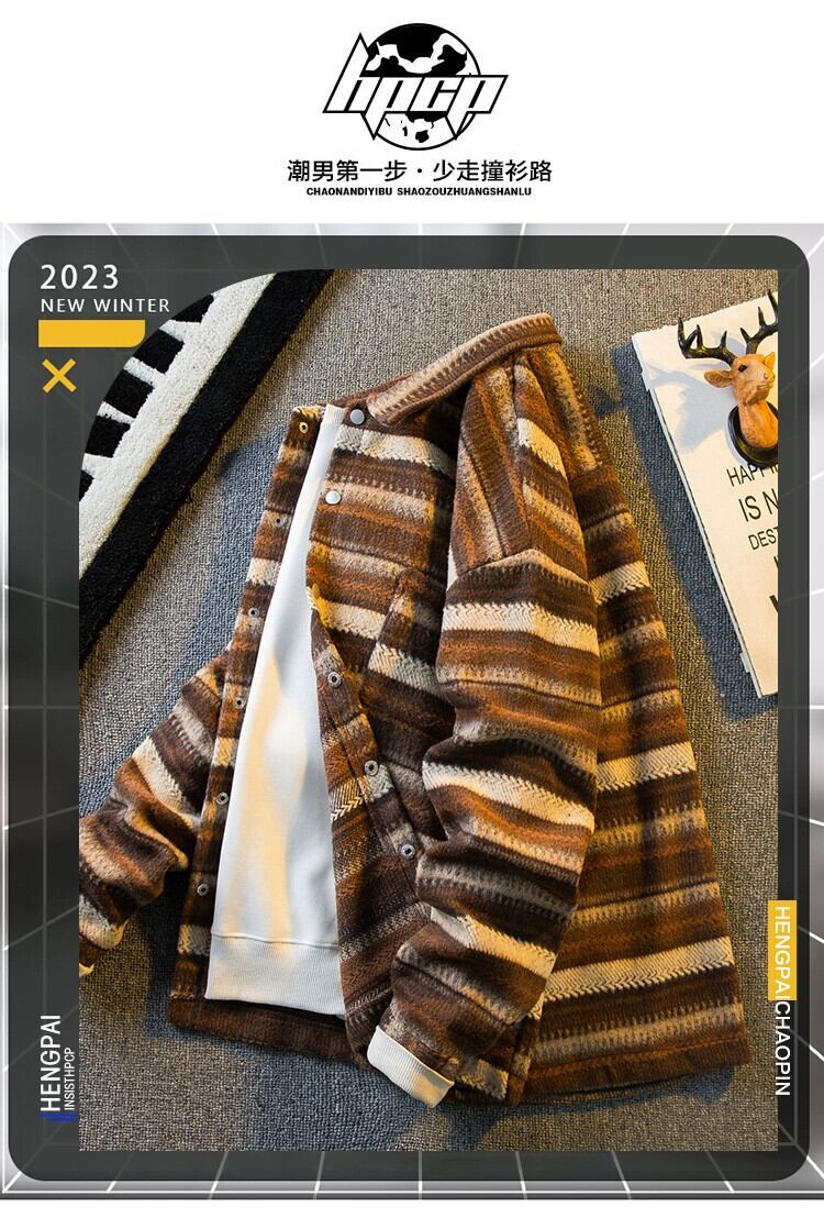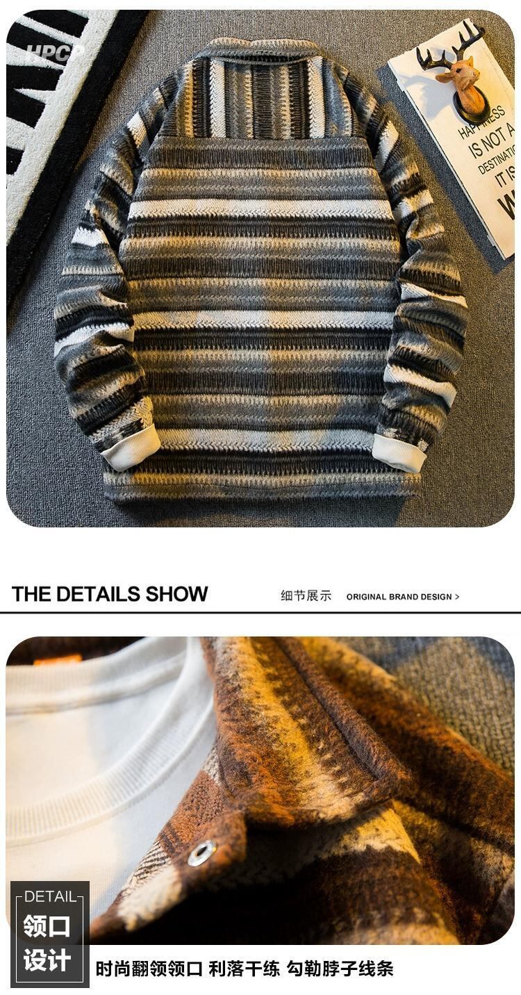 Hengpai トレンディ Xiaoxiangfeng ウールウールジャケットメンズ春と秋のレトロな対照的なカラーデザインのストライプカジュアルジャケット スプリング 春物 オータム 秋物 3381987090055389