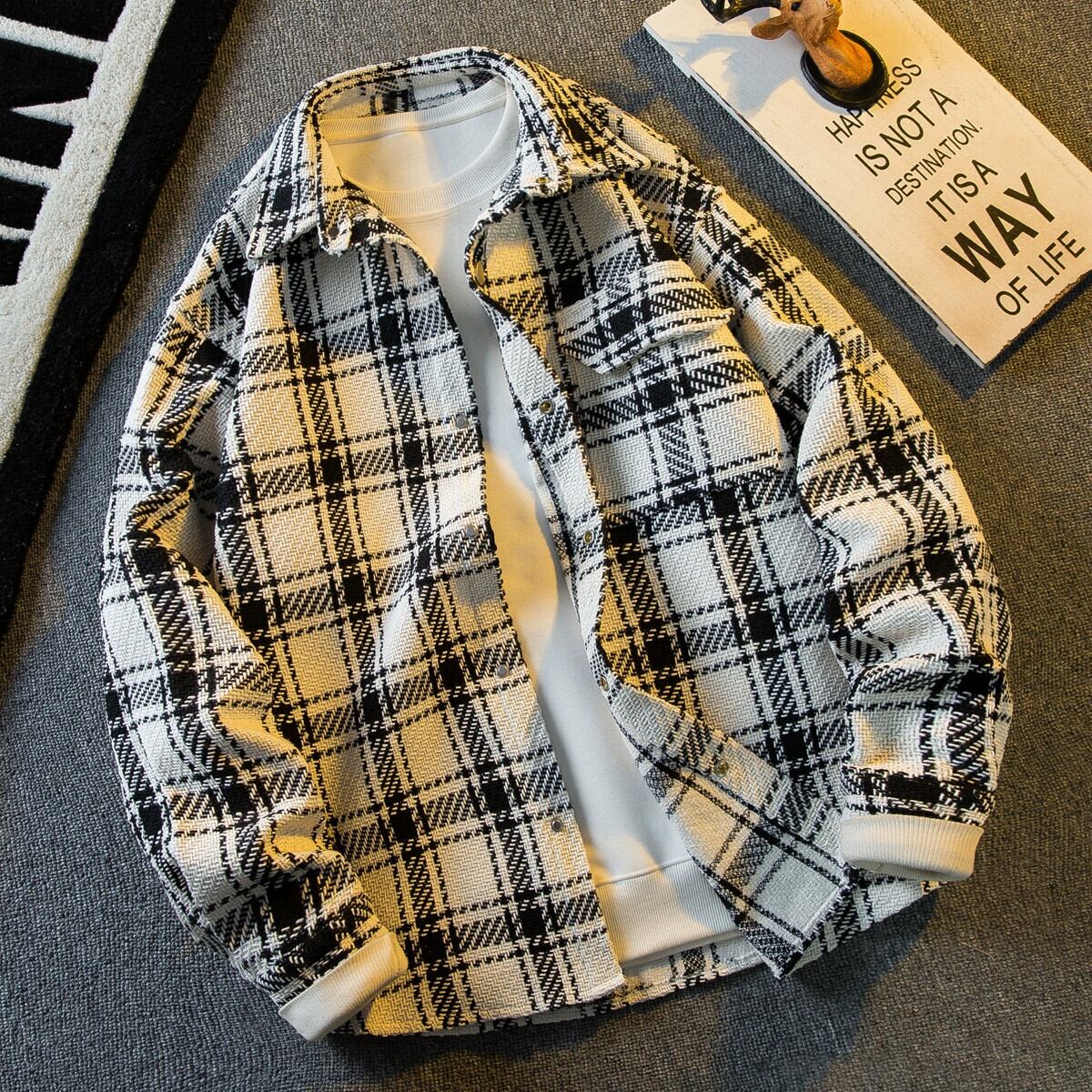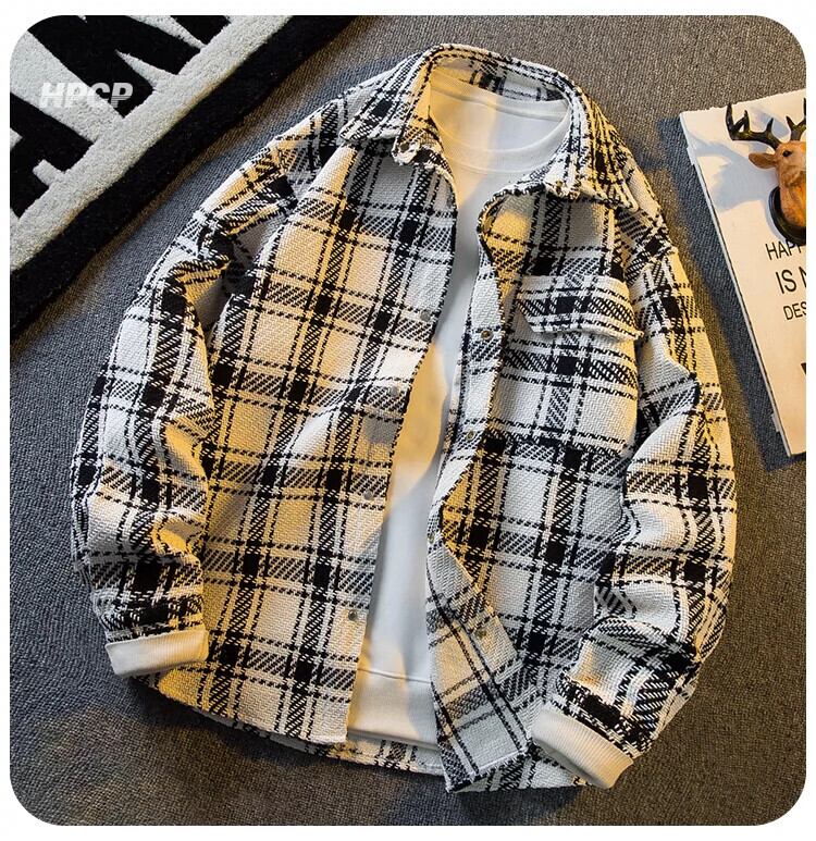横型ファッションフレンチレトロスモールフレグランススタイルシャツジャケットメンズ春秋トレンディブランドルーズ長袖シャツジャケット ロング スプリング 春物 オータム 秋物 3381936342677730
