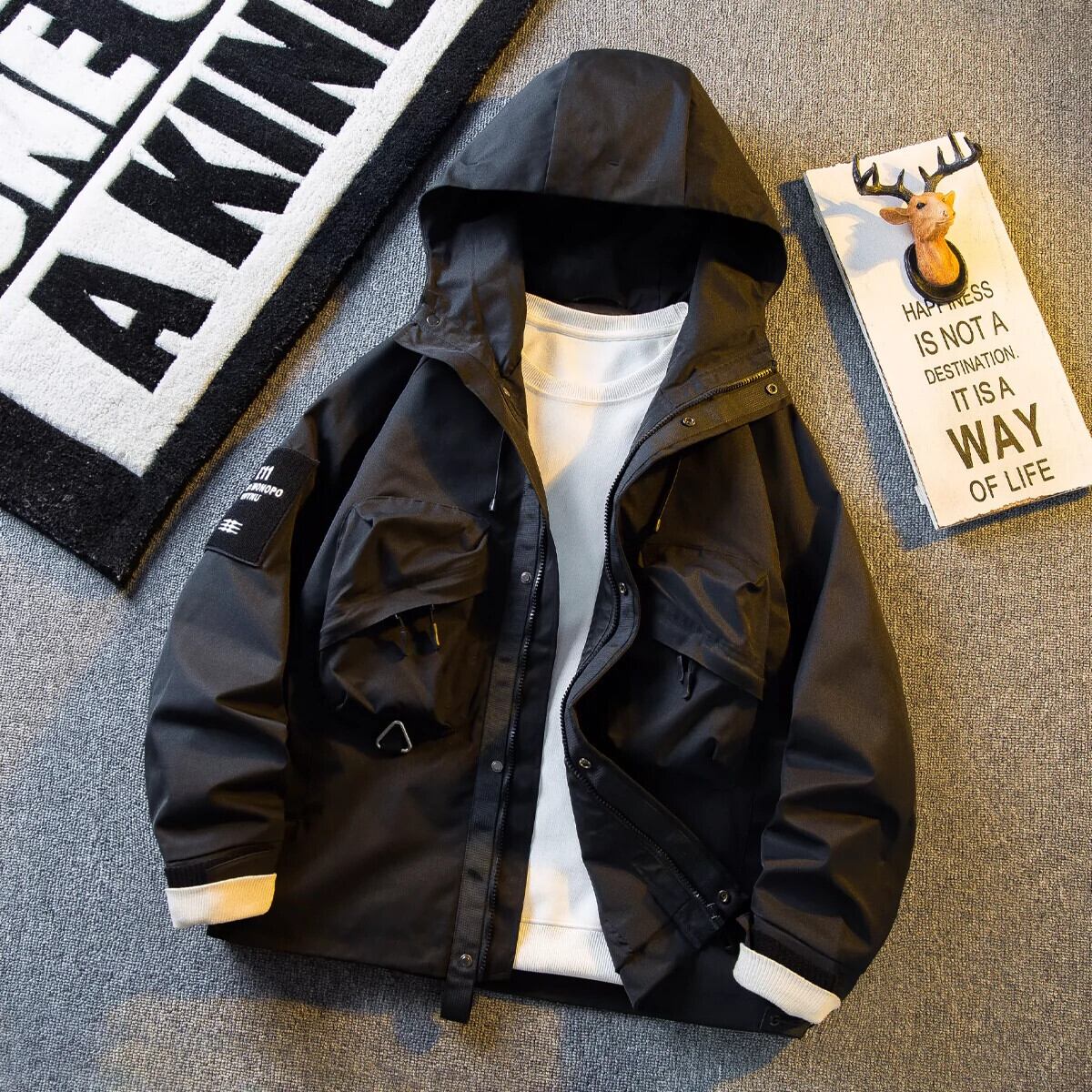 Hengpai Mountain 機能的なスタイルのカップルアウトドアジャケット 2024 メンズフード付きワークジャケットハンサムジャケット 3381994101308728