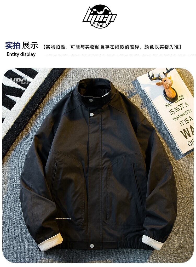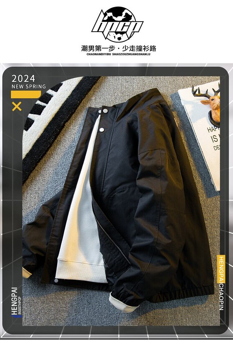 Hengpai ハンサム スタンドカラー コーチ ワーク ジャケット メンズ 早春 アメカジ ベースボール ユニム ジャケット メンズ 春秋スタイル カジュアル スプリング 春物 オータム 秋物 3381973922149078
